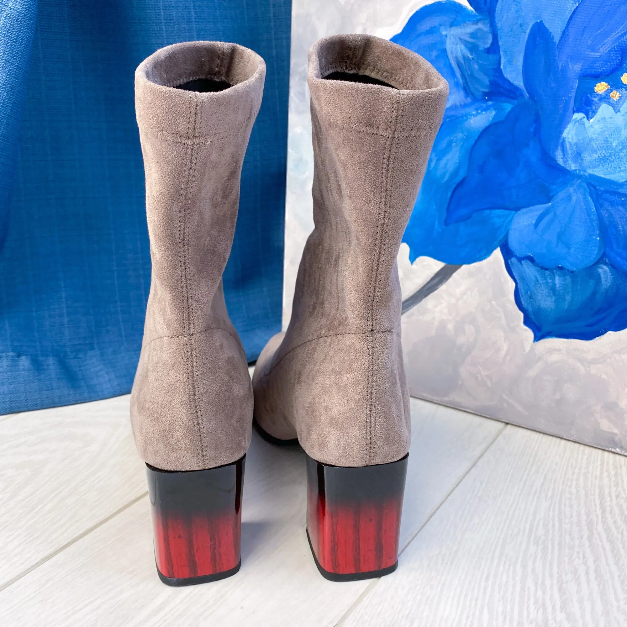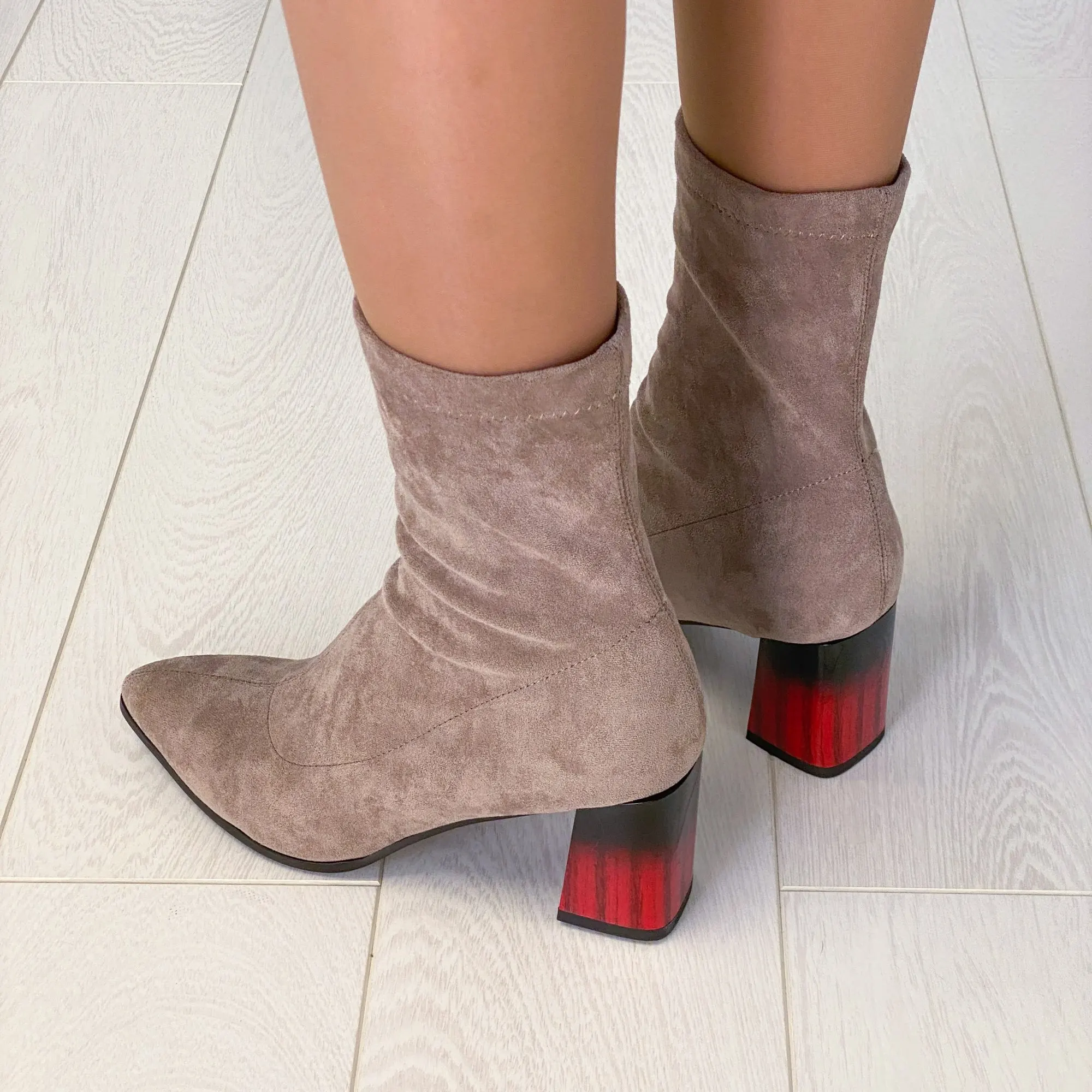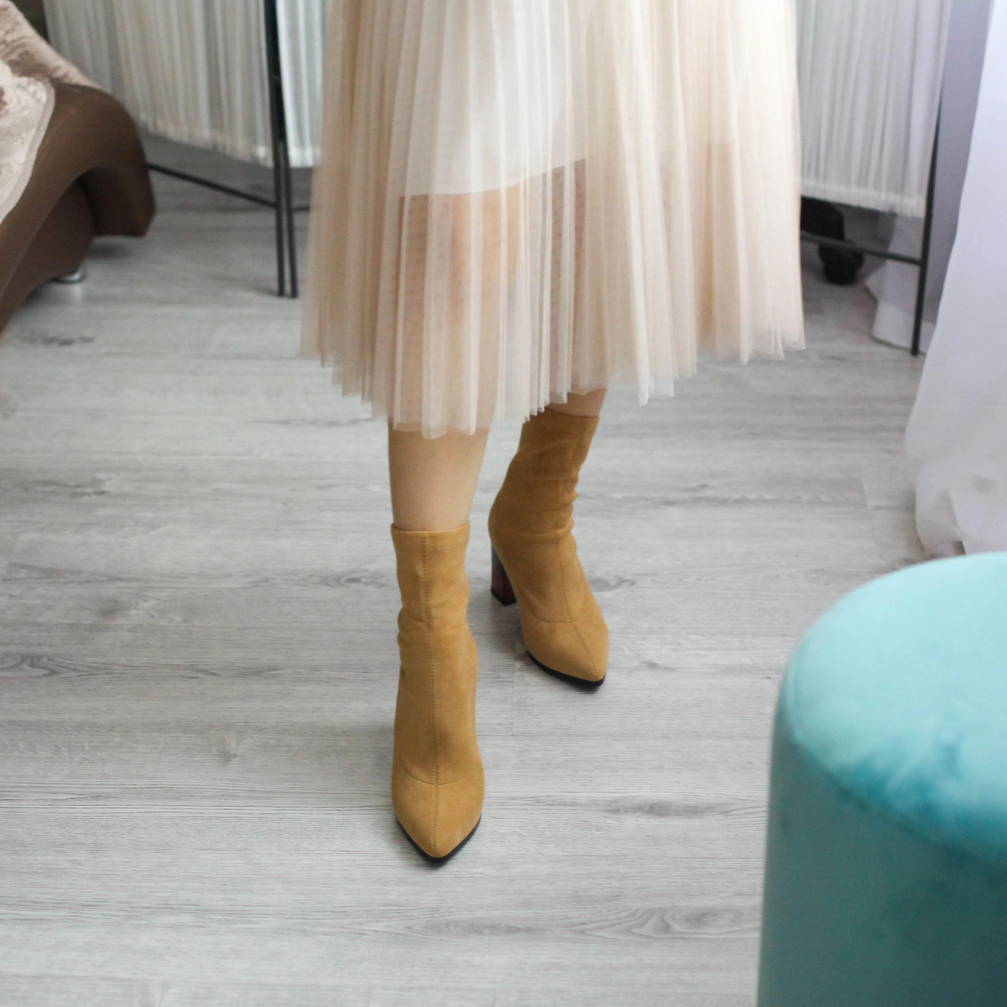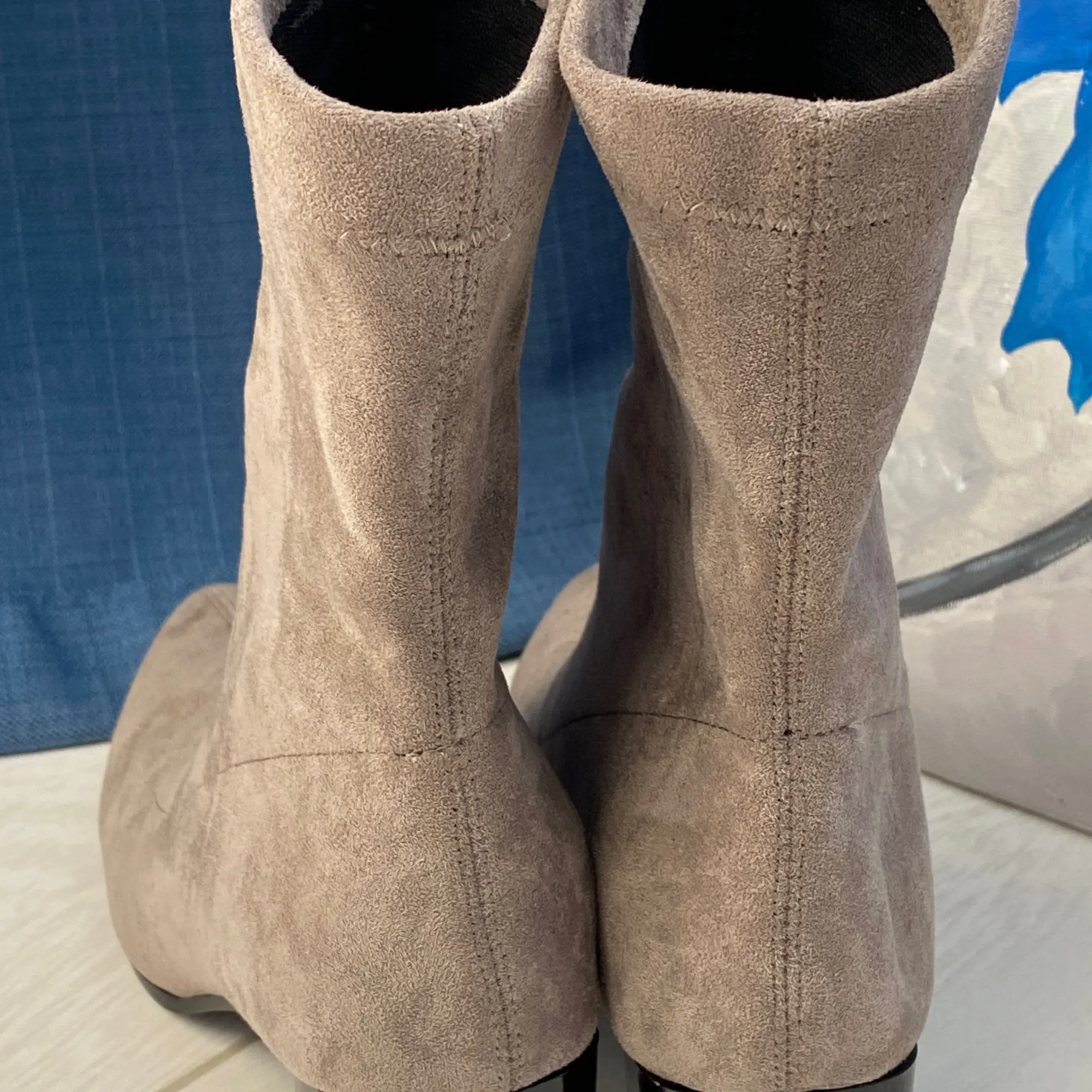 Это мой любимые Сапоги! ●Сапоги пришли в пыльнике, внутри пенопластовые вставки. ●Материал флок, имитирует замшу. ●Каблук очень необычный, массивный, устойчивый, не тяжёлый и главное УДОБНЫЙ!! ●Высота каблука: 7,5 cm ●Застёжек нет, надеваються как чулки. ●На свой 37 размер взяла 8 размер продавца- идеально! ●Не ползут вниз на ноге, даже на мой худые ноги сидят плотно. ●Носок острый. ● Идеально смотриться с юбками и пальто. На сезон весна, осень. Качество отличное!