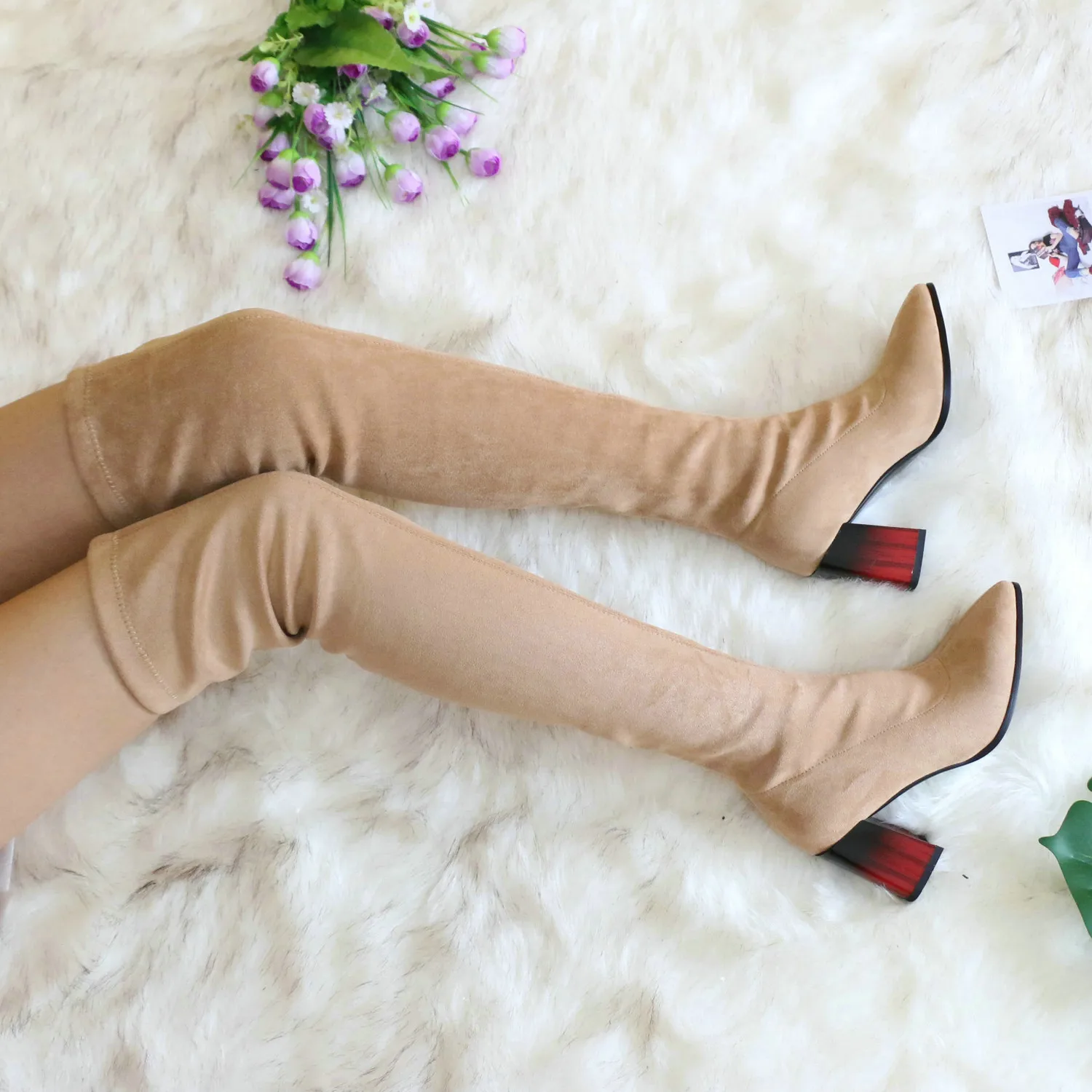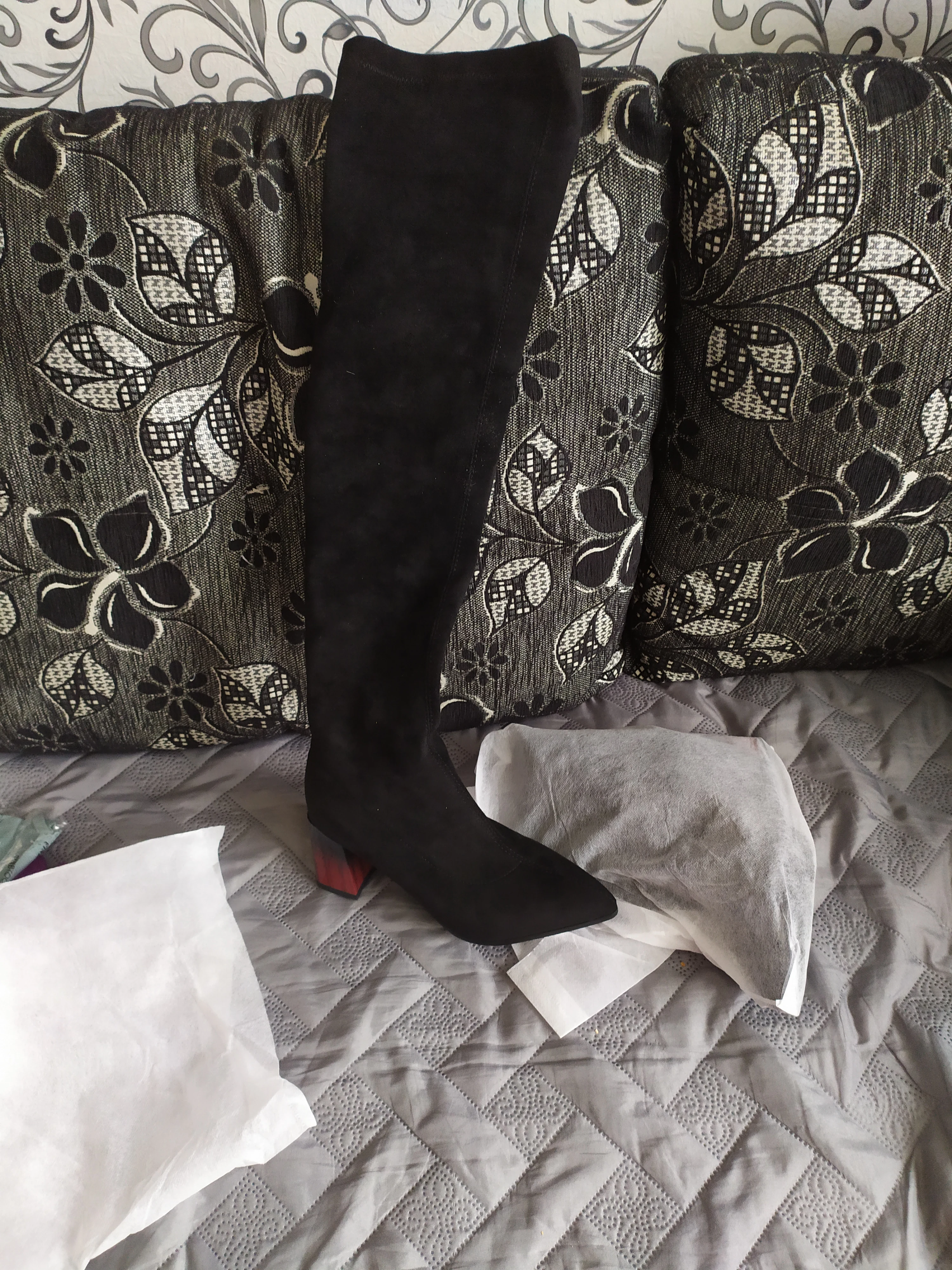 Доставка заняла две недели, как всегда мой любимый магазин Qutaa постарался и упаковал все по высшему разряду! Каждый сапог в индивидуальном пыльнике, в большой воздушной подушке. В подарок продавец положил резинку для волос и открытку магазина на свой 36 р-р отлично подошёл китайский размер 5 на выбор огромное множество расцветок,несколько видов каблука и кроме коротышей, имеются ботфорты выше колена материал верха - флок качество отличное