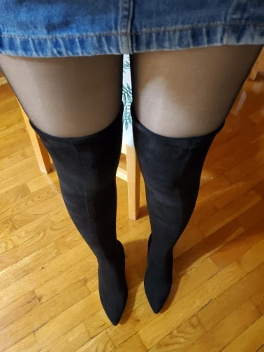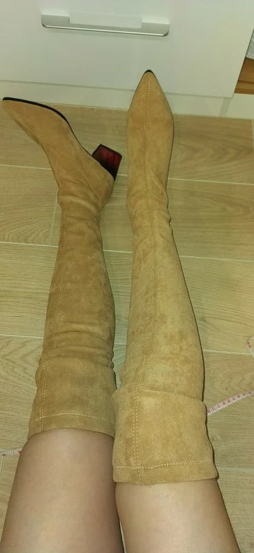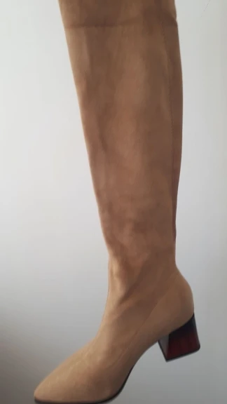 Очень хорошие ботфорты , качественные , материал стрейч хорошо тянуться и держаться прочно на ноге , каблук квадратный удобный , ходить в них удобно , швы у сапогов ровные , пришли быстро за 3 недели до Тульской области , я брала размер 40 на 25 см стопы , 39 российский размер, очень классные ботфорты рекомендую, они подходят к любой одежды , очень стильные .