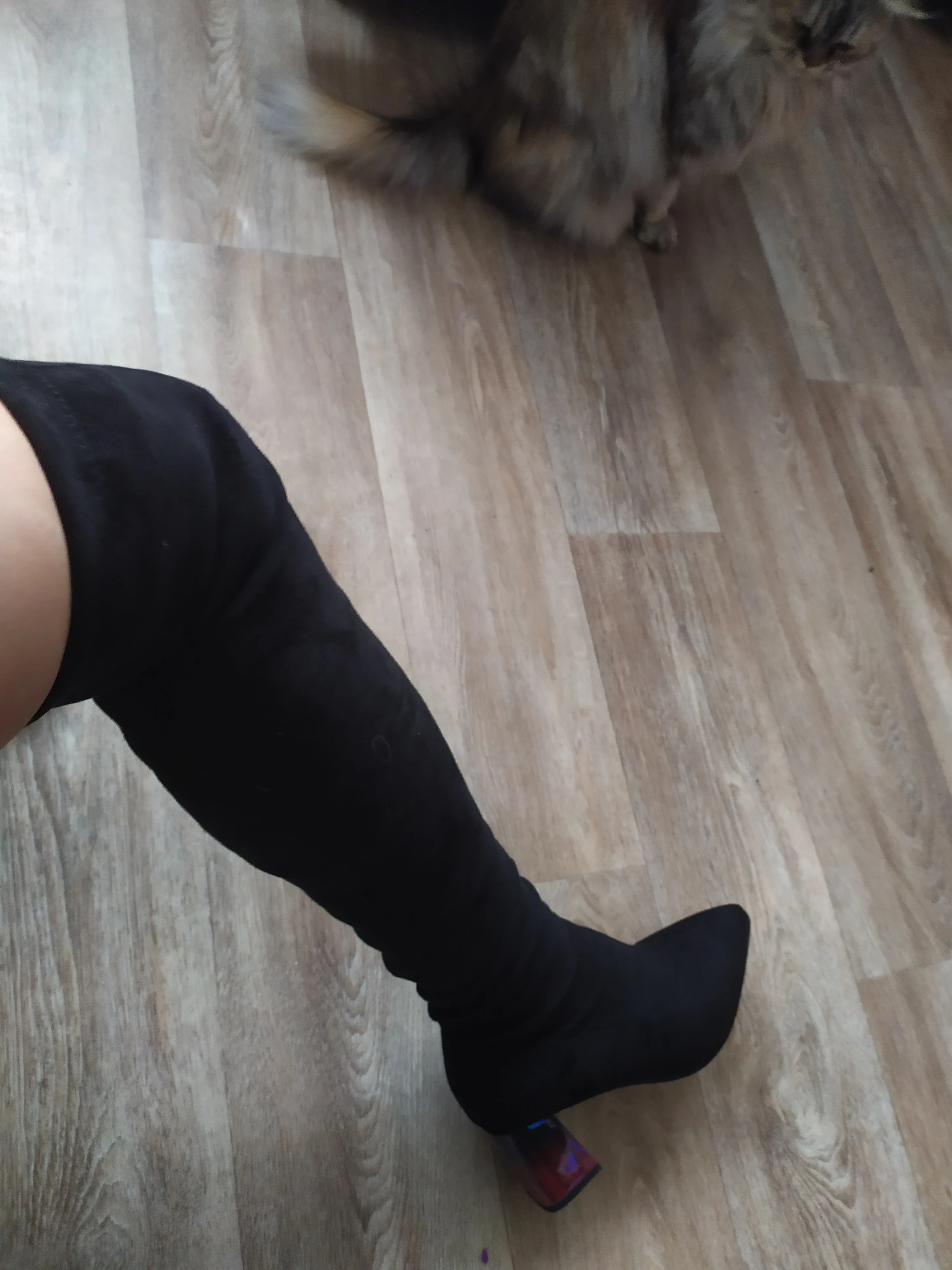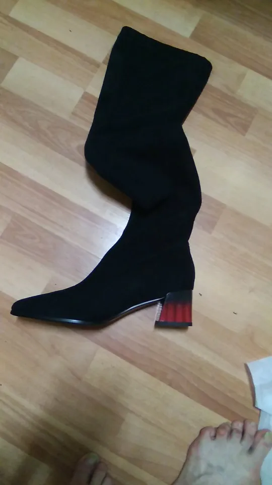 ДОСТАВКА: Заказала 11.11.2020 получила 10.12.20 (пришло в Эстонию с момента заказа за 29 дней). Доставка платная 8,09€, с отслеживанием. Цена ботфорт 26,54€ (скидка 0,52€ ). ТОВАР: Женские ботфорты с острым носком QUTAA. Ботфорты из флока, каблук 5,5 см, цвет черный, размер 10. На мой размер стопы 25,5 см по размерной сетке взяла 10, т.к. острый нос есть запас 1,5см (что указано на подошве вместе с размером). По испонению ботфорт нареканий нет, качество просто на высшем уровне все швы ровные, следов клея нет. Единственный минус - это ЗАПАХ! Первый раз товар пришел такой вонючий, неделю на балконе и до сих пор этот ядовитый аромат. В остальном модель модная, каблук красивый с градиентом, материал стрейчивый. Выглядят дорого. Магазин QUTAA Official Store советую!!!