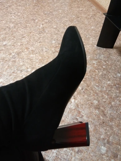 прекрасные сапоги. красивые. дошли быстро. есть запах, думаю выветрится. каблук удобный, устойчивый.