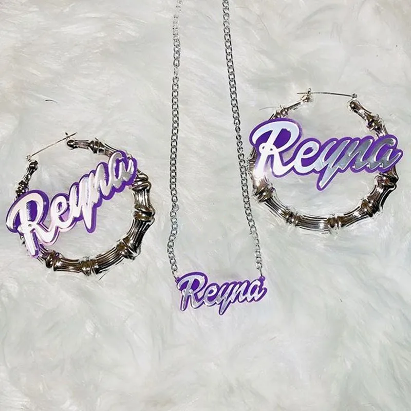 3UMeter 2020 новые пользовательские акриловые ожерелья с подвесками по заказу Крупногабаритные акриловые Бамбук Серьги-кольца персонализированные имя серьги ожерелье ювелирные изделия