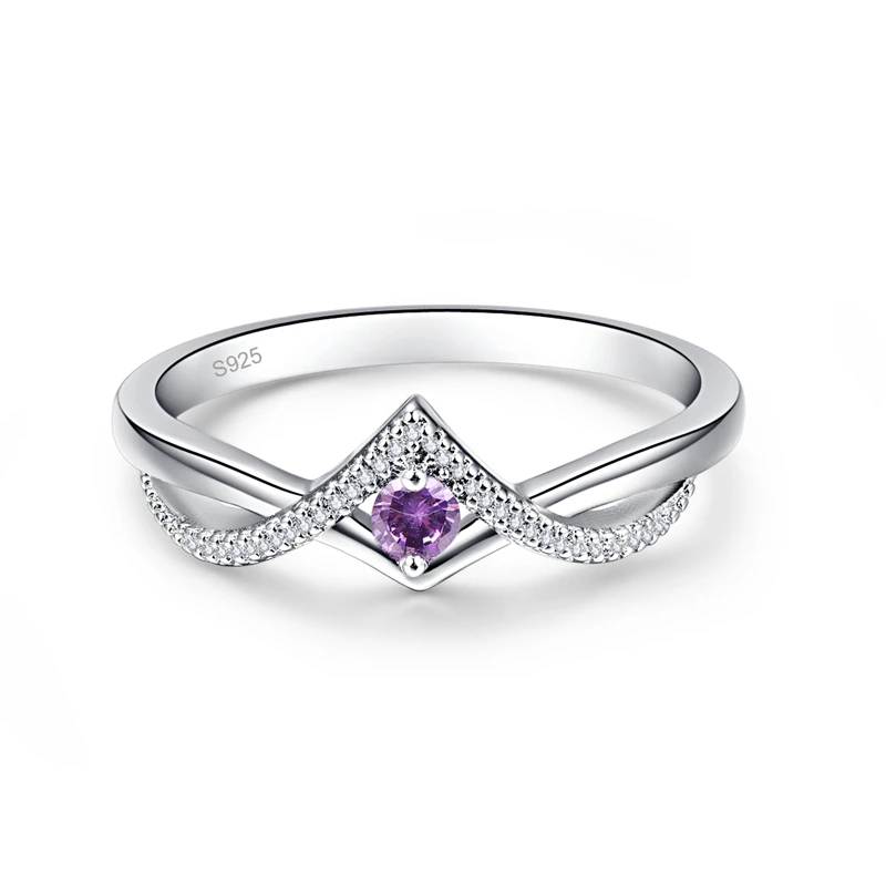 Женское кольцо с аметистом и белым цирконием, серебряное кольцо 925...