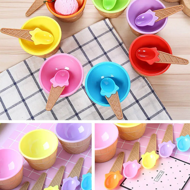 Детская посуда, десертная чаша, пластиковая прочная 1 набор, милая миска для мороженого, ложка, сделай сам, инструменты для мороженого, детские подарки