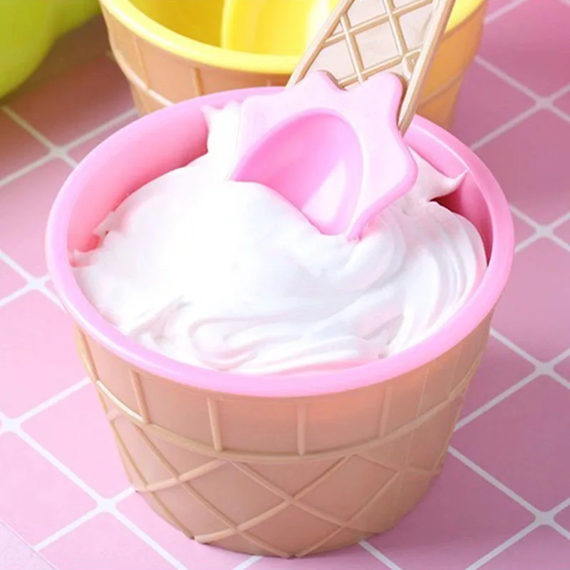 Прекрасный набор мороженого в пластиковых мисках и ложках!