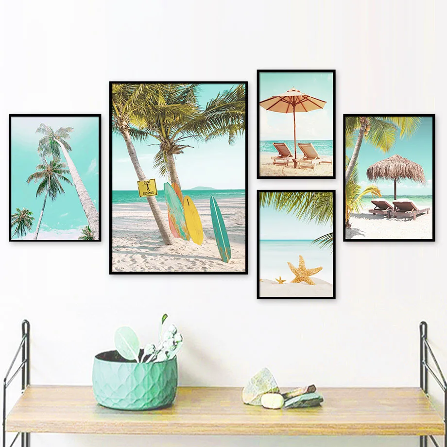 Настенная картина с морским пляжем зонтик кокосовое дерево Морская ...