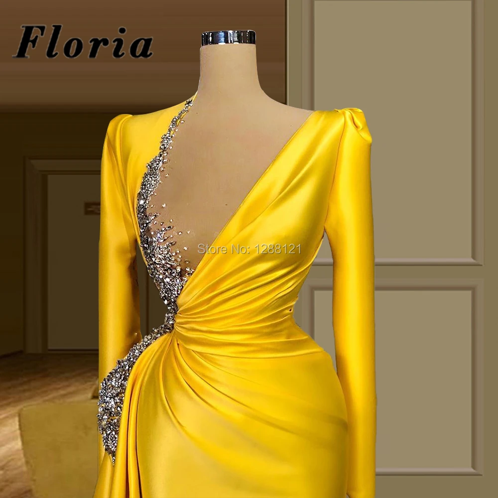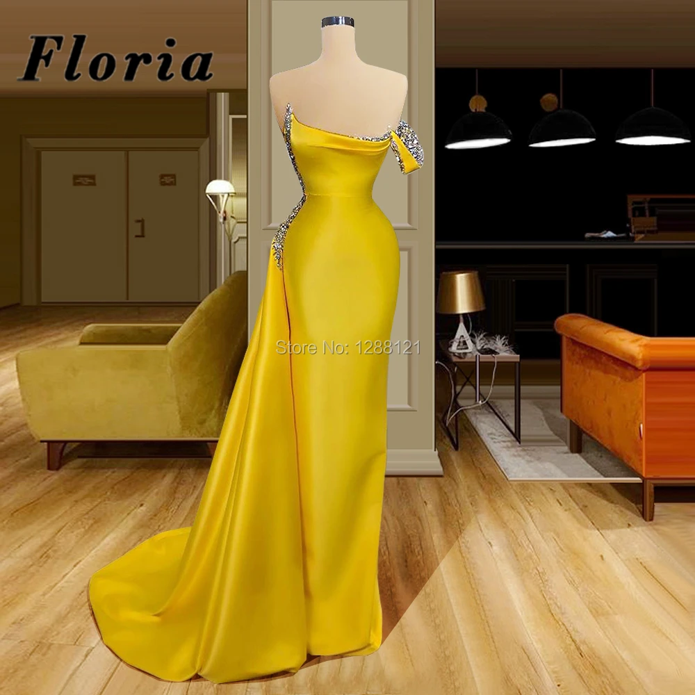 Атласное платье-Русалка, с одним открытым плечом, желтое, с бисером