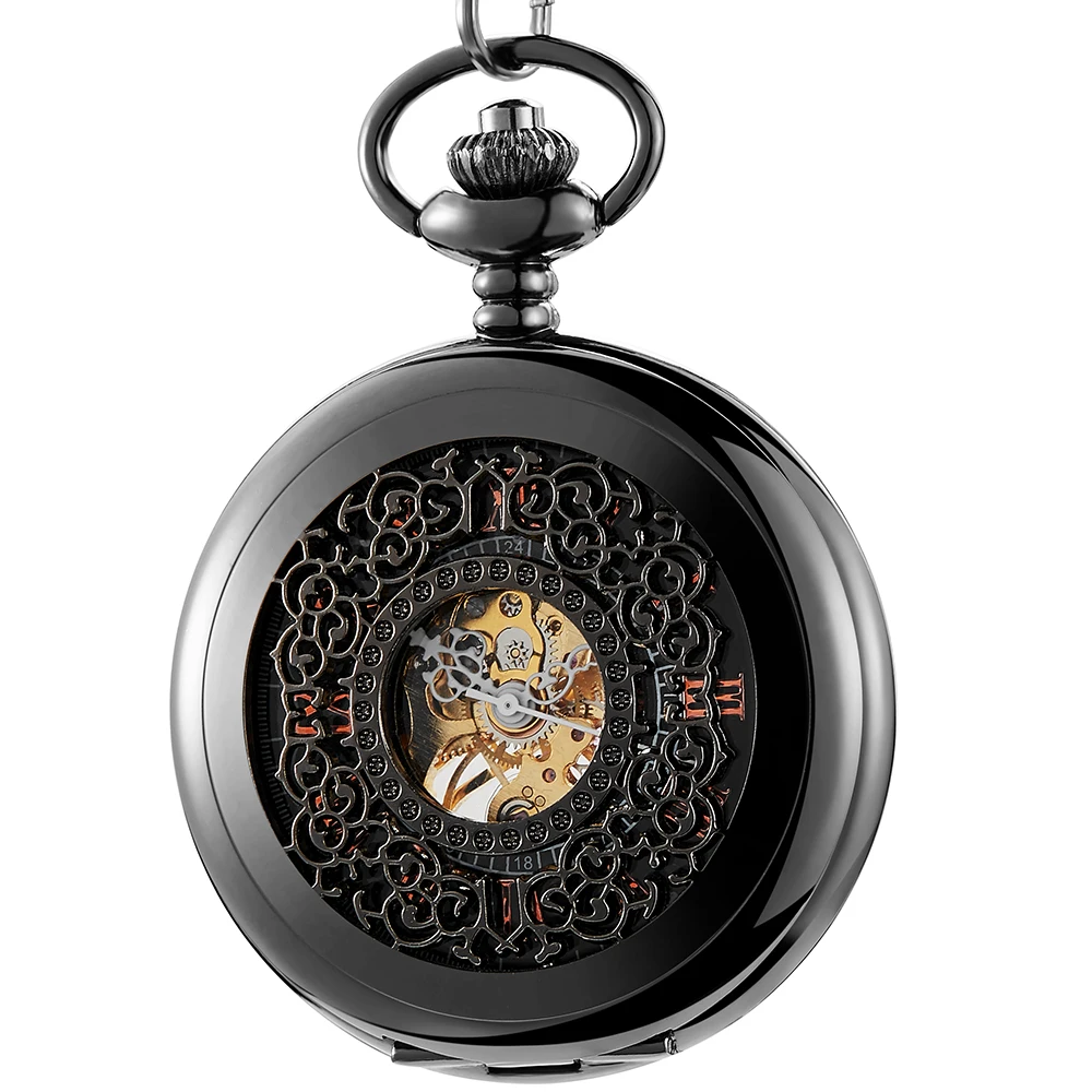 Часы в стиле стимпанк, Механические карманные часы с ручным заводом, винтажные, черные, золотые, ФОБ, ожерелье с подвесками на цепочке reloj de bolsillo