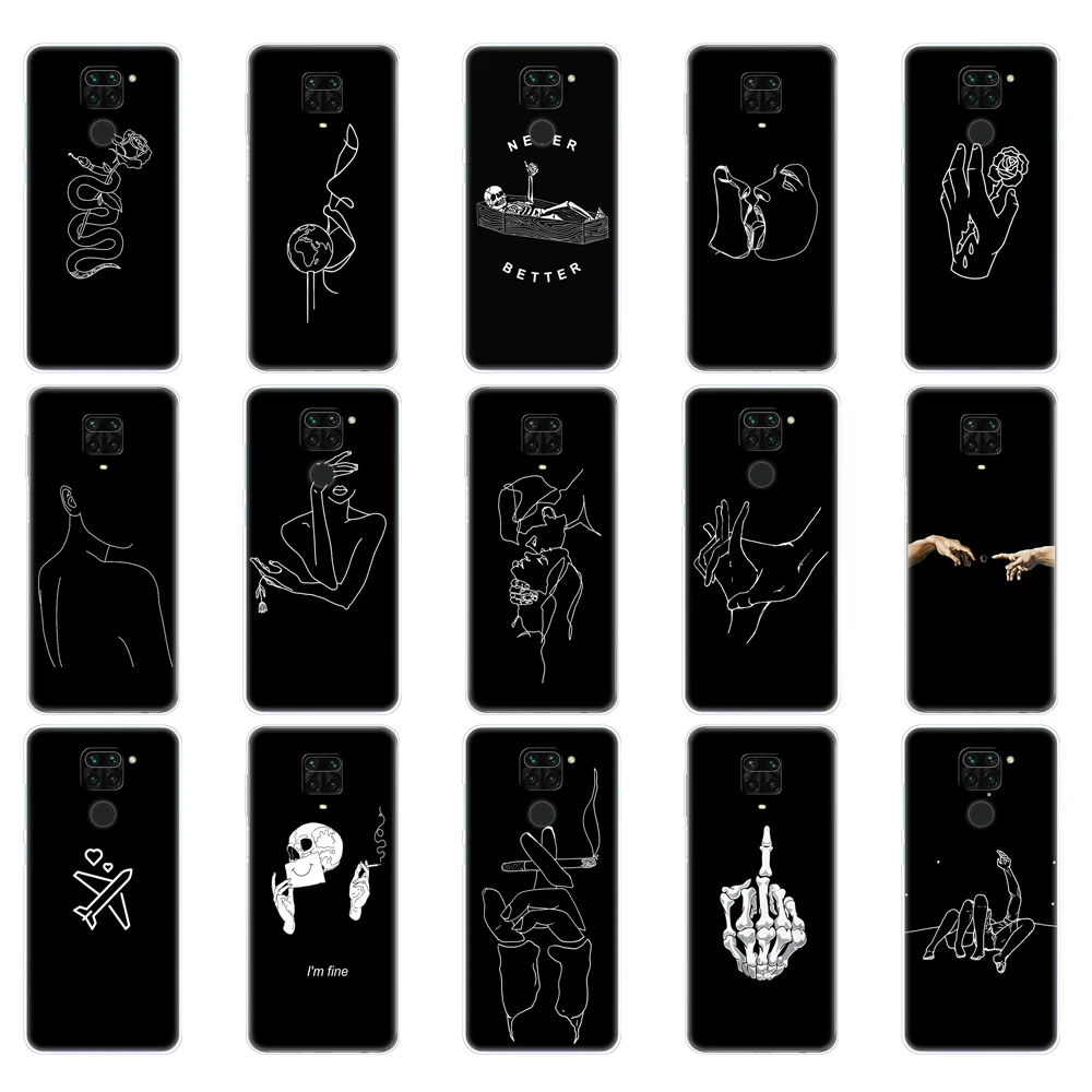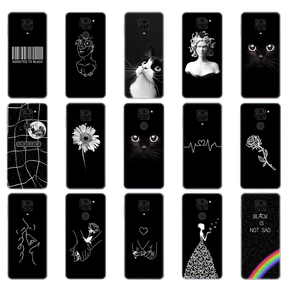 Чехол для Xiaomi Redmi Note 9, мягкий ТПУ чехол-накладка для телефона Redmi Note 9 Pro, силиконовый бампер, чехол, кожа, ударопрочный черный милый