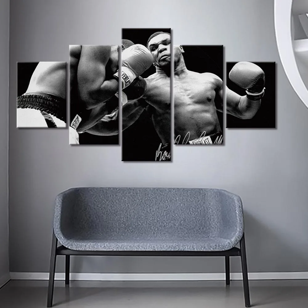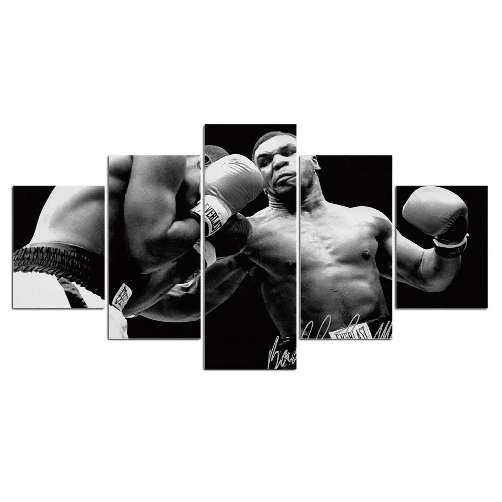 Модульная картина Hd, украшение для дома, 5 шт., картины боксерской Тайсона, рисунок, холст, постер, рамка, настенные картины для спортзала