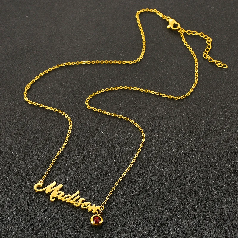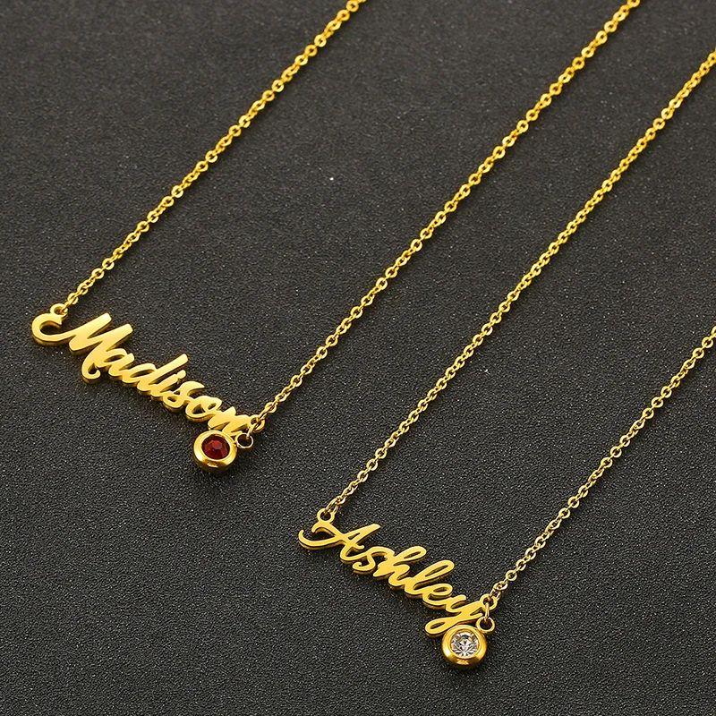 Персонализированные Пользовательское имя ожерелье нержавеющая сталь хрусталь камень ожерелья с буквой табличка для подарка на день рождения для женщин и мужчин