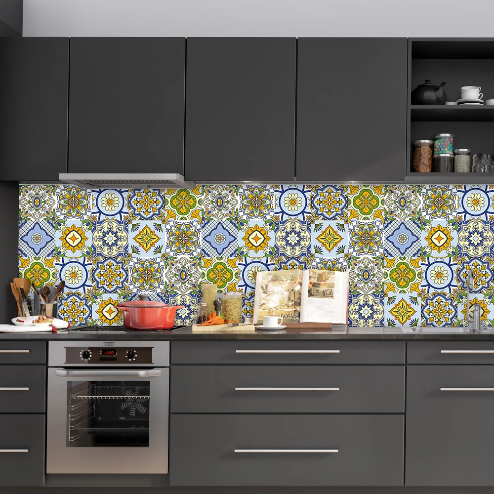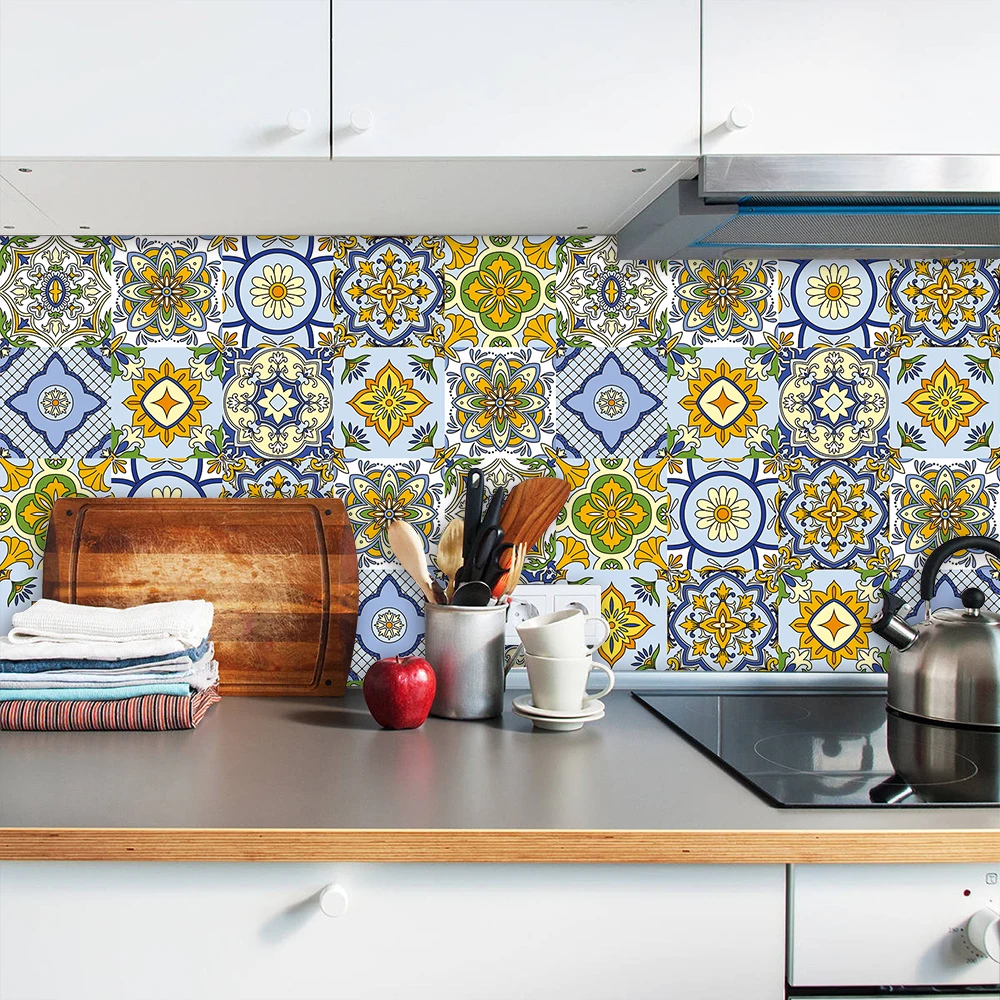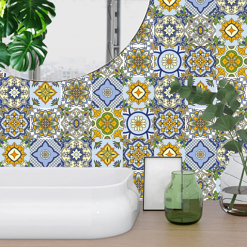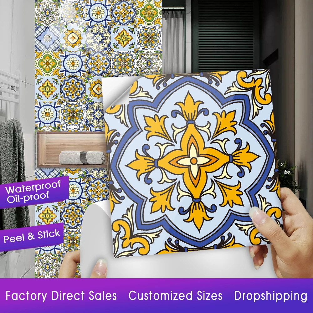 Красочная Ретро Хрустальная твердая керамическая плитка, настенная наклейка для кухни, ванной, художественная роспись, домашний декор, блестящая поверхность, виниловые наклейки на стену