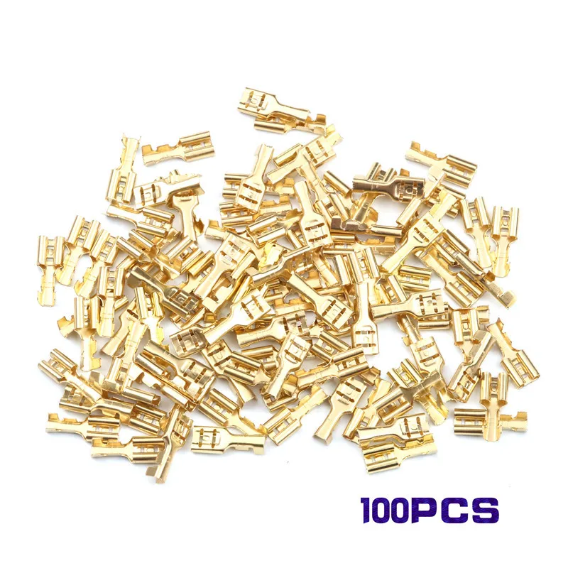 100 шт. 2,8/4,8/6,3 мм Женский обжимной клеммный соединитель набор золотой Латунный автомобильный динамик электрические провода соединители