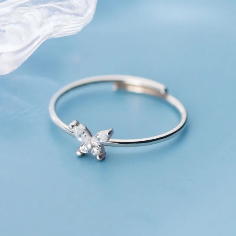 Женское регулируемое кольцо из серебра 925 пробы, с бантом