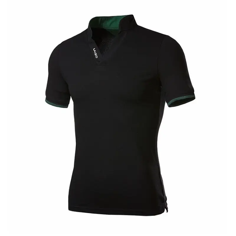 Мужская Тонкая рубашка-поло с коротким рукавом, с воротником-стойкой
