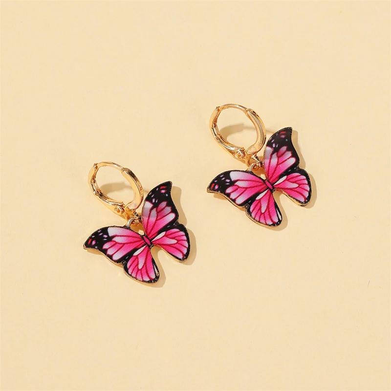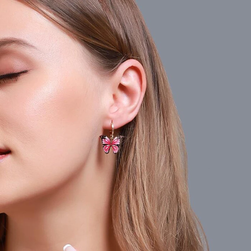 Женские круглые серьги-кольца, из сплава, с разноцветной подвеской в виде бабочки