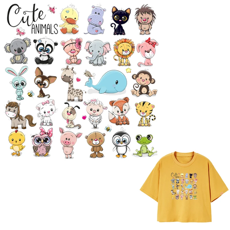 Мультяшные животные Гладильные наклейки Топы теплопередача аппликац...