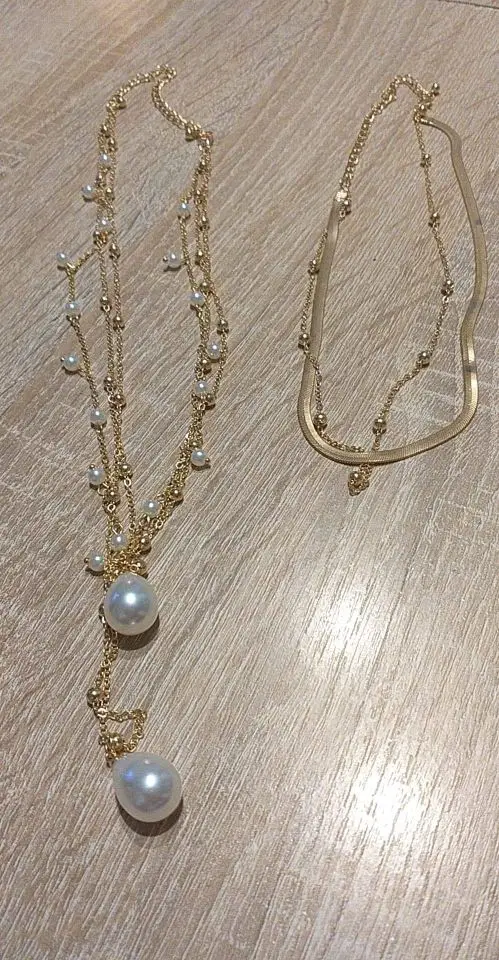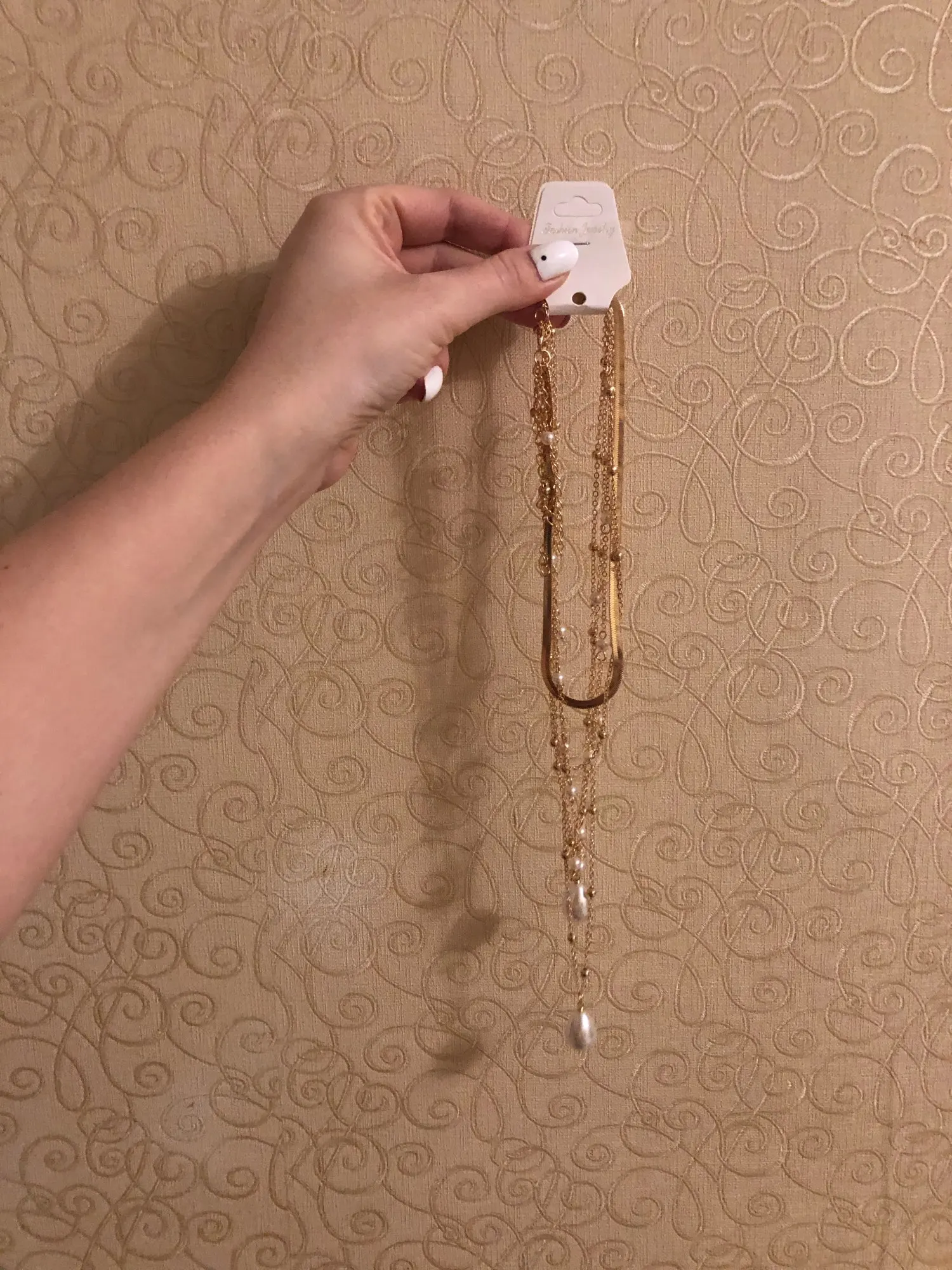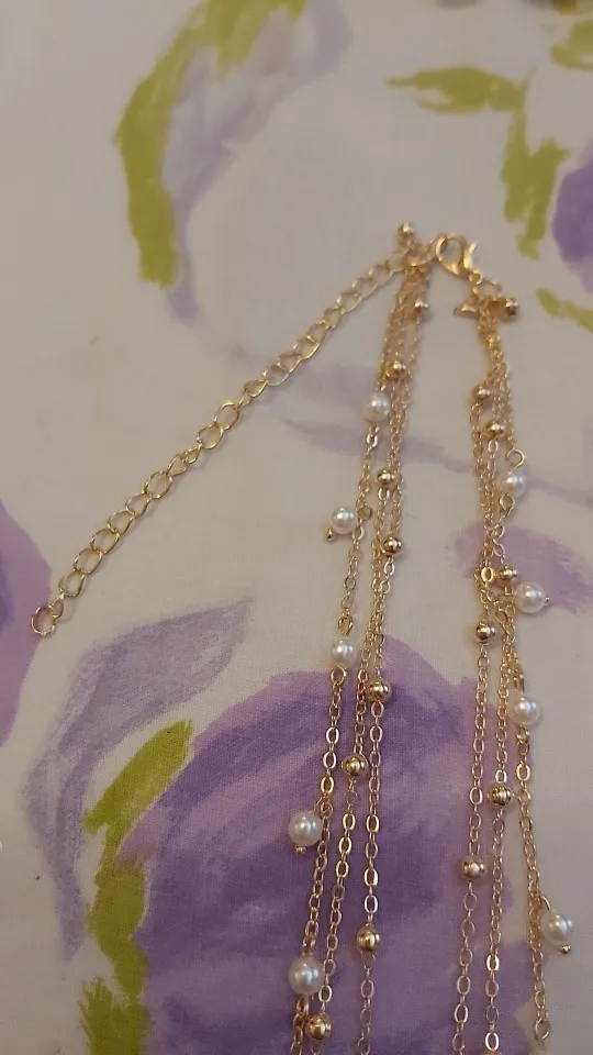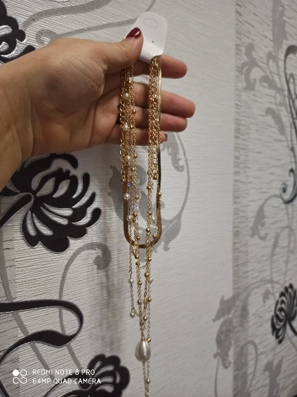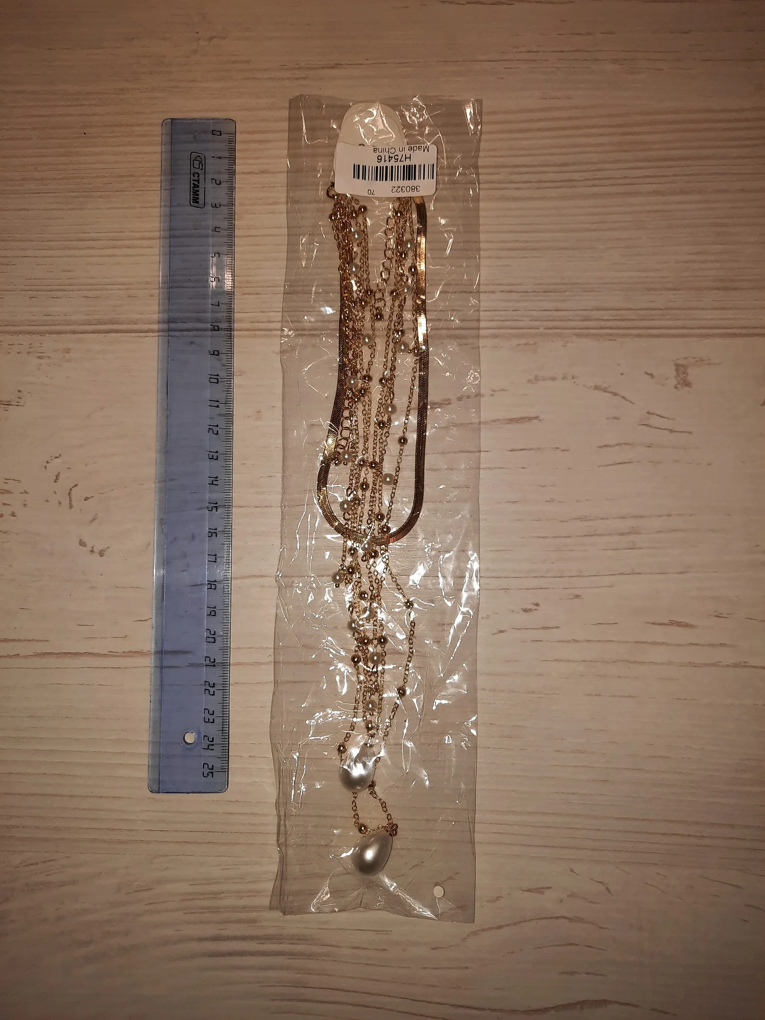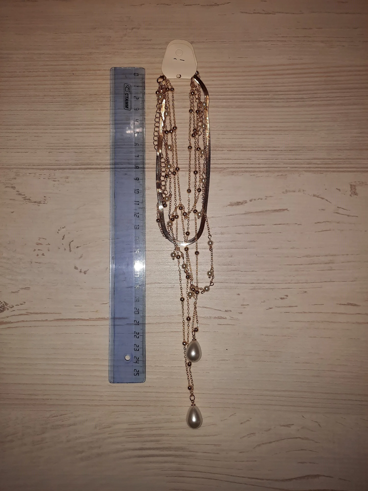 Красивая цепочка. Можно носить раздельно верхние цепочки или нижние с жемчугом. Пришла сильно запутанная,пришлось потрудиться