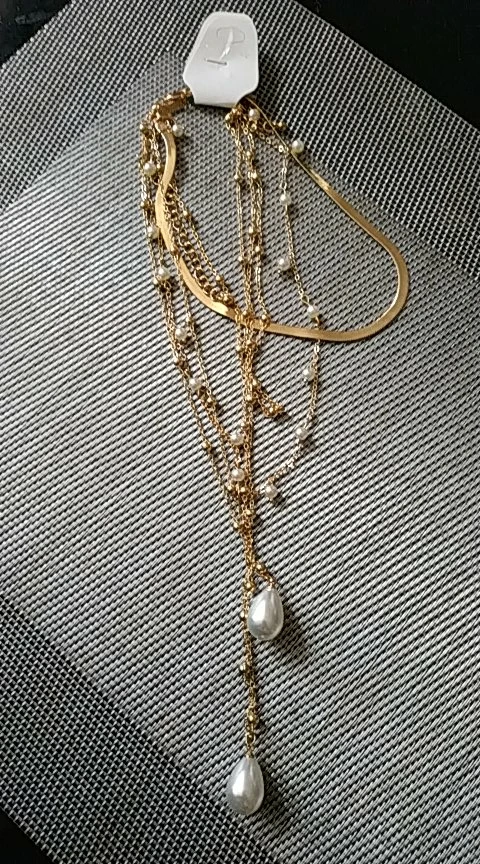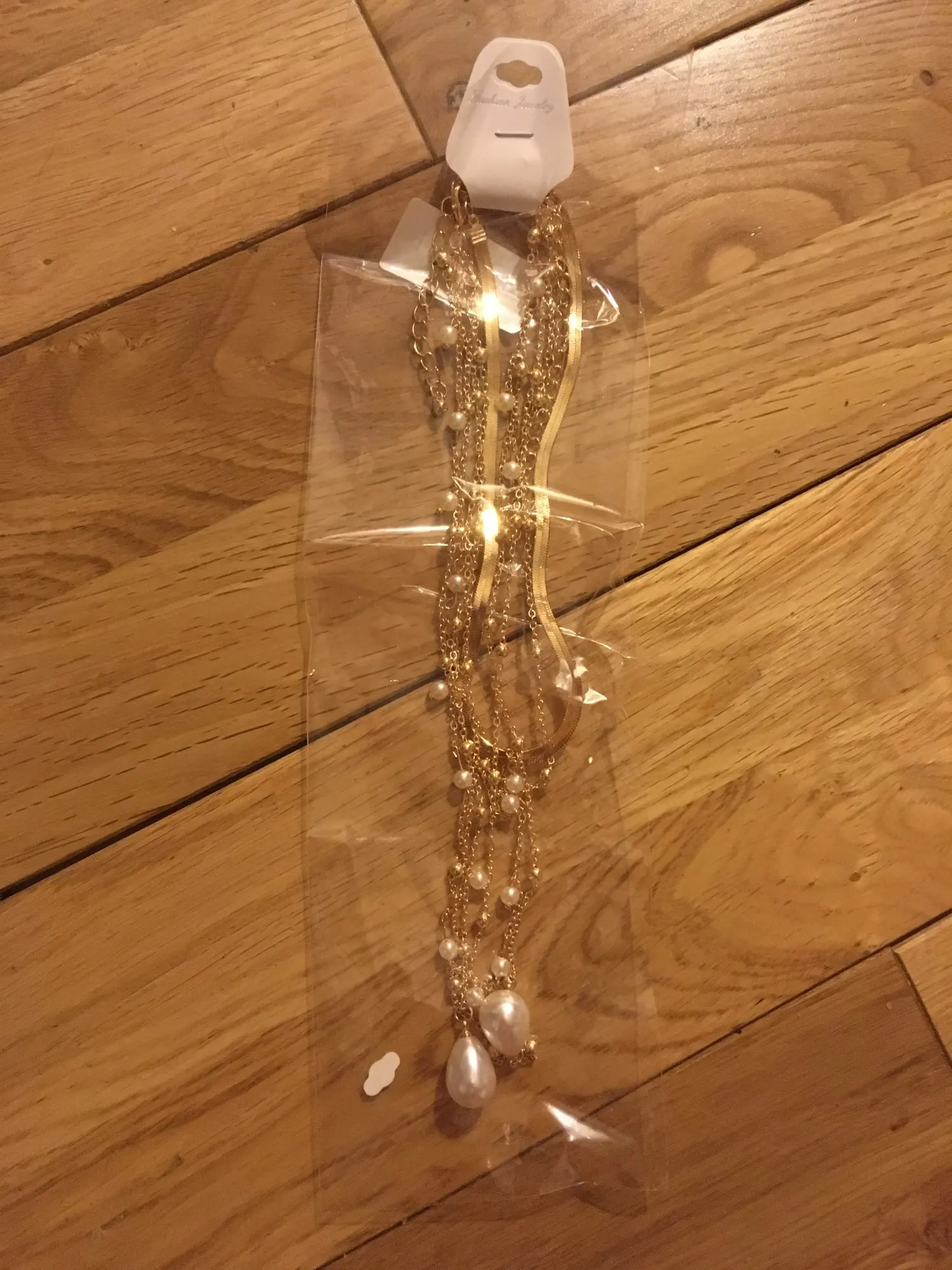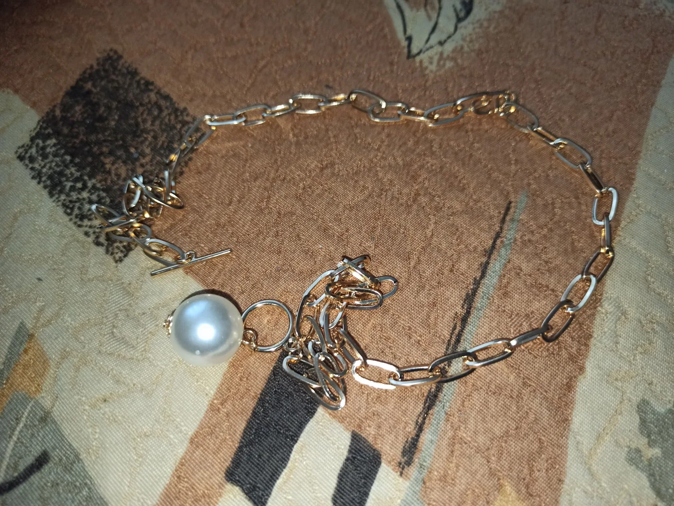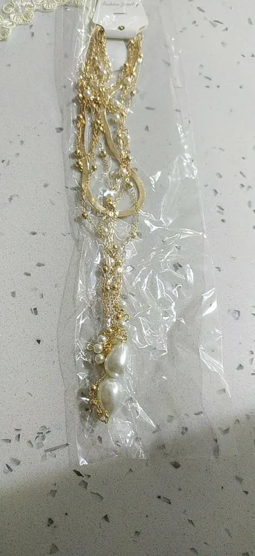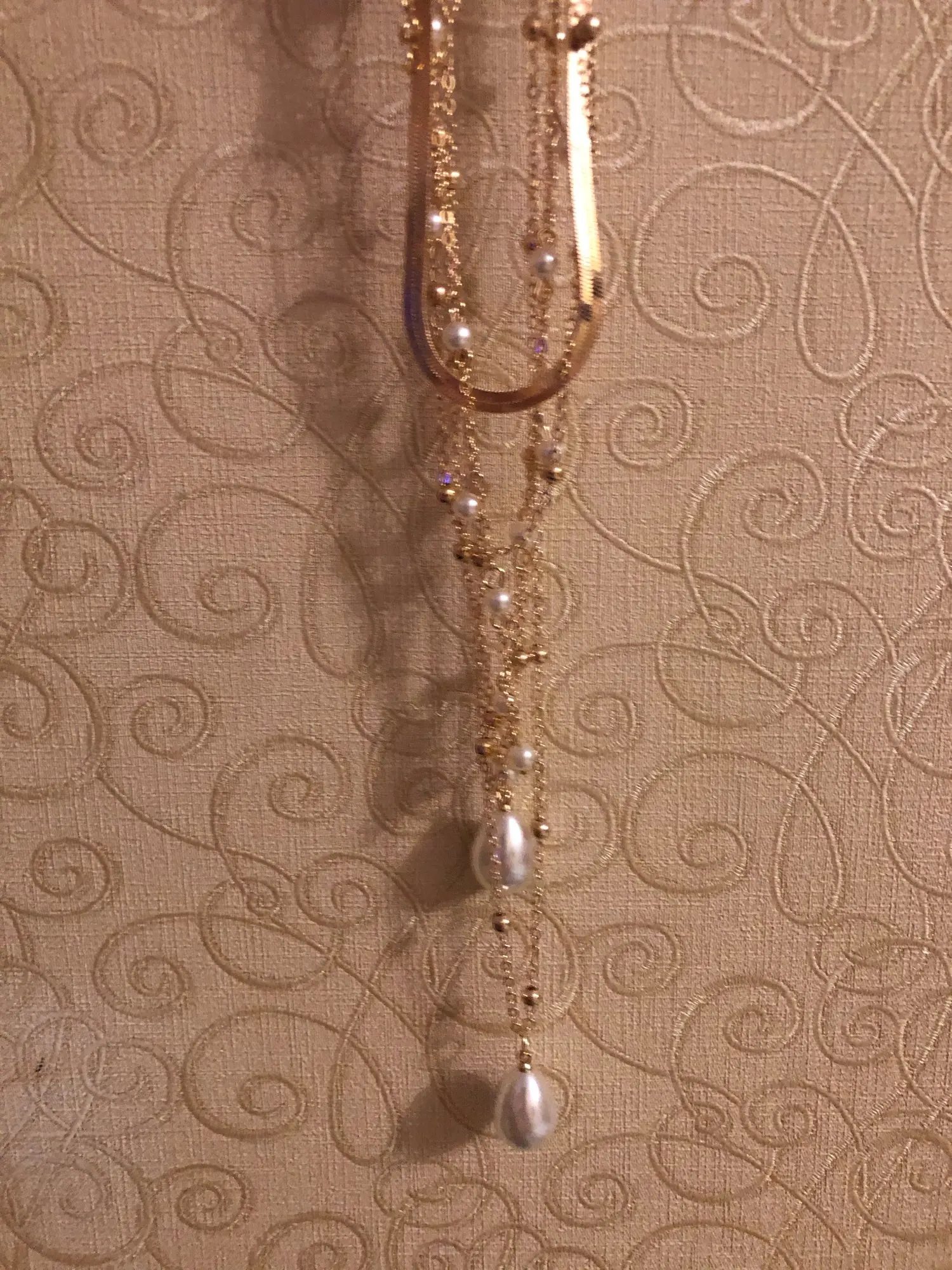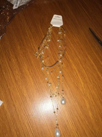 Красивая цепочка. Можно носить раздельно верхние цепочки или нижние с жемчугом. Пришла сильно запутанная,пришлось потрудиться