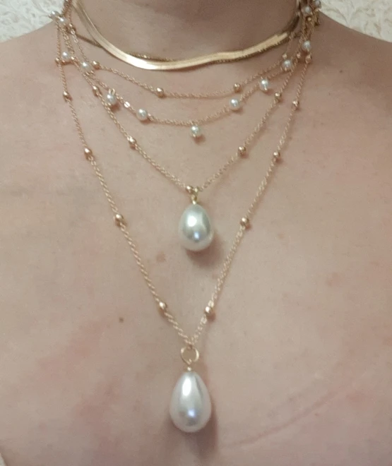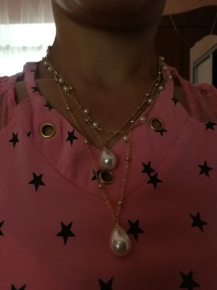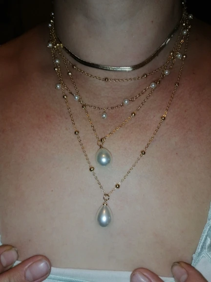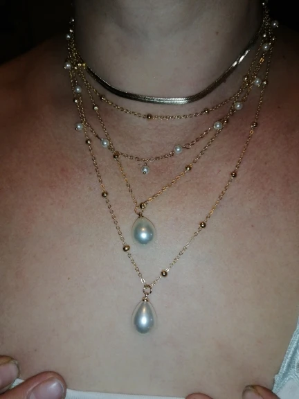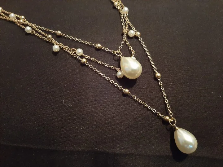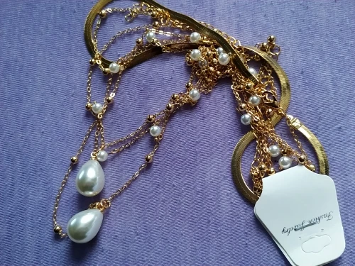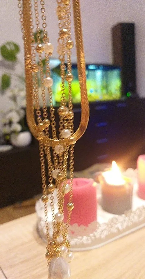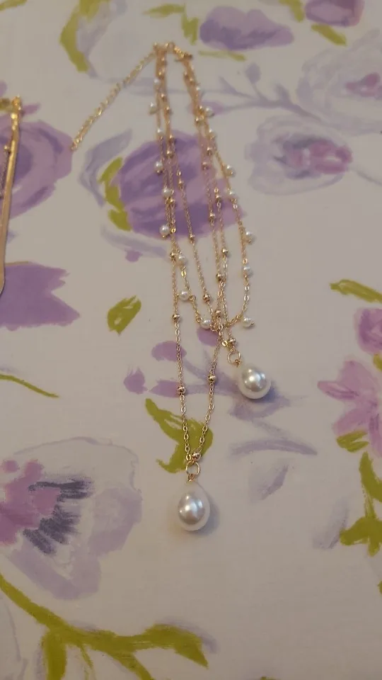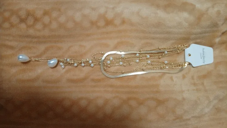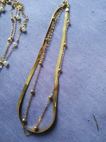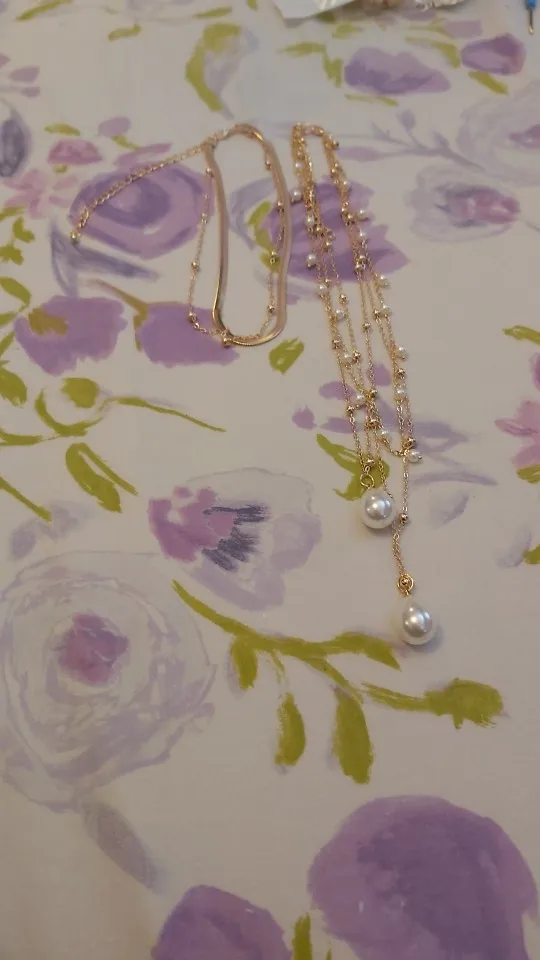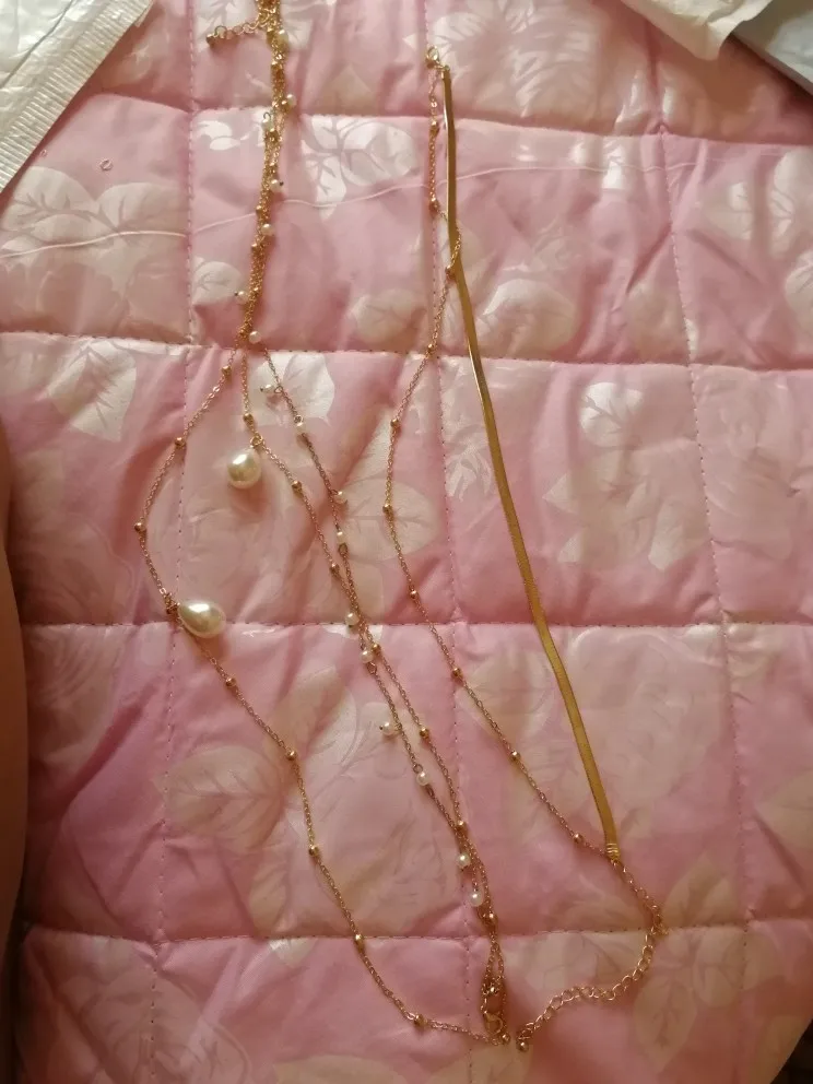 Красивая цепочка. Можно носить раздельно верхние цепочки или нижние с жемчугом. Пришла сильно запутанная,пришлось потрудиться