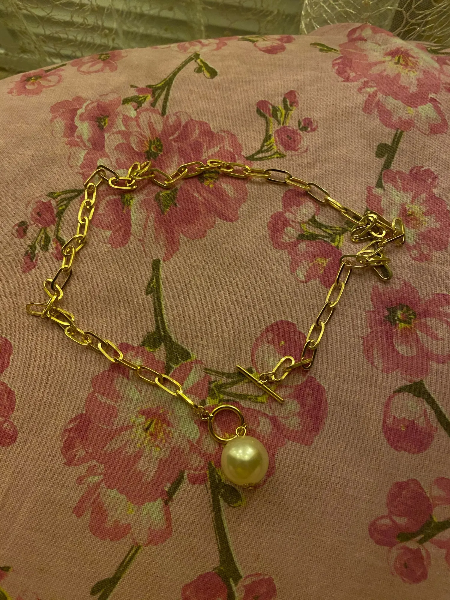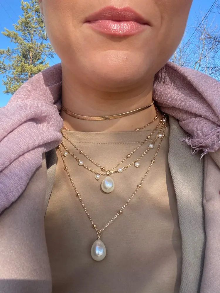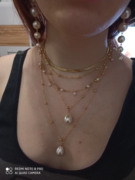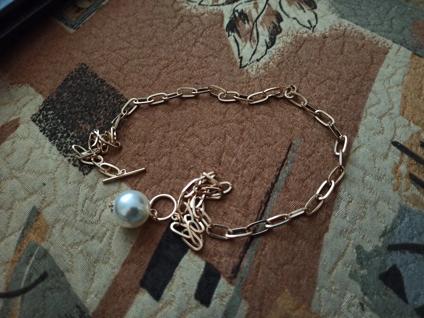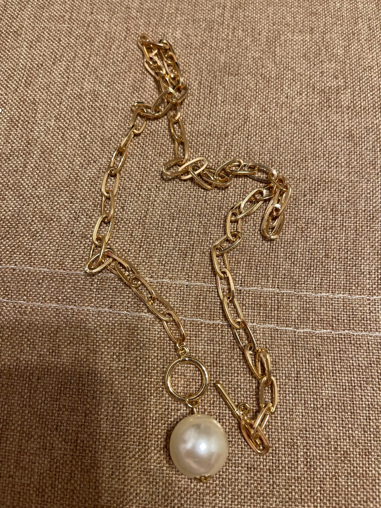 Красивая цепочка. Можно носить раздельно верхние цепочки или нижние с жемчугом. Пришла сильно запутанная,пришлось потрудиться