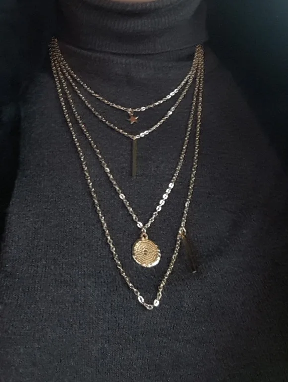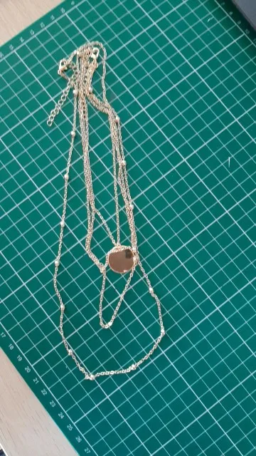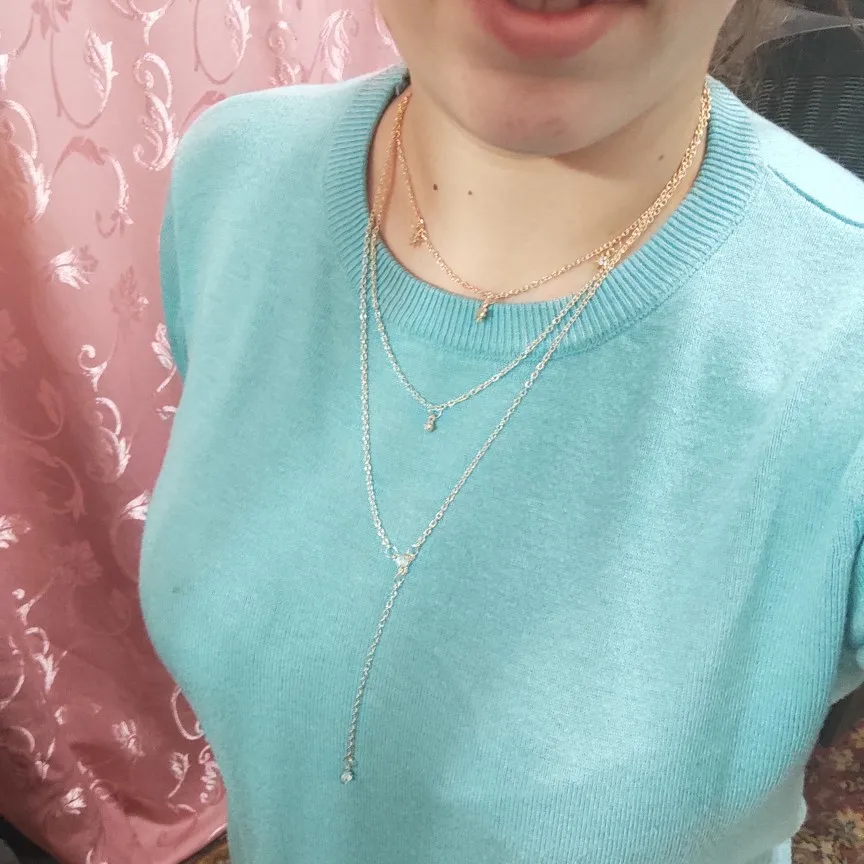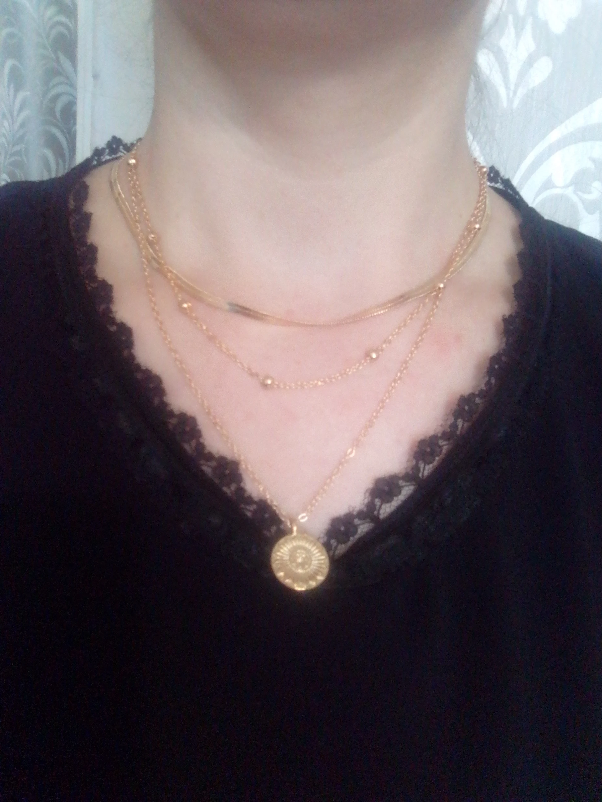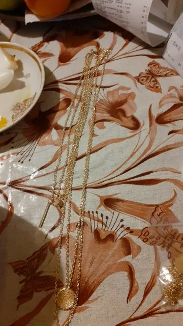 Ожерелье очень красивое. Жаль, что нет такого в серебряном цвете. Смотрится очень стильно и изящно. Идеально с рубашкой (как на фото продавца). Из минусов только то, что очень слабые звенья. При примерке, два звена разошлись. Пришлось чинить. Посылка пришла быстро, но продавец очень долго отправлял заказ. Я даже хотела его отменить.
