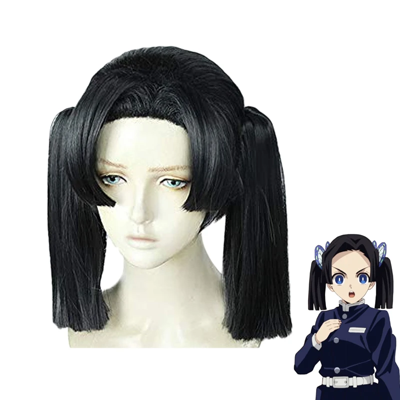 Женский термостойкий парик с черными хвостами Demon Slayer Kimetsu no Yaiba Kanzaki Aoi из синтетических волос для косплея