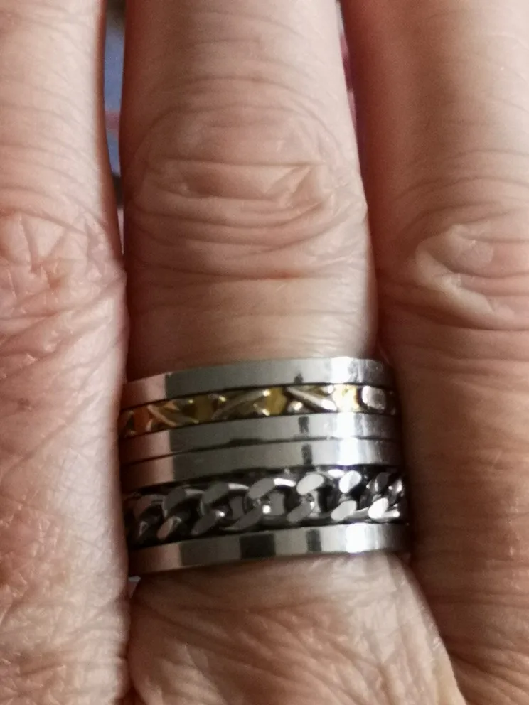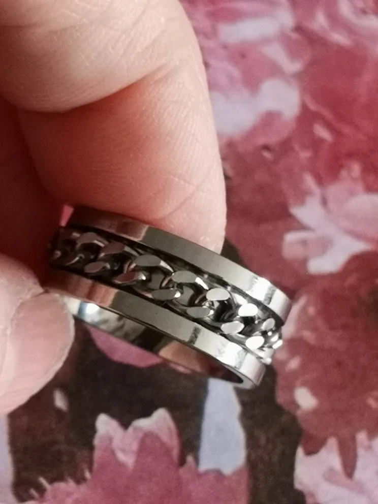 Красивое вращающееся кольцо. Приятный вес и блеск. Отличная деталь. Кольцо доставлено быстро и в идеальном состоянии. Выглядит так же хорошо или лучше у человека. Отличное качество. Я приятно удивлен. Показан рядом с моим обручальным и свадебным кольцом из белого золота и рядом с вращающимся кольцом, которое я купил много лет назад в Galeries Lafayette в Париже. Спасибо замечательному продавцу за отличный продукт.