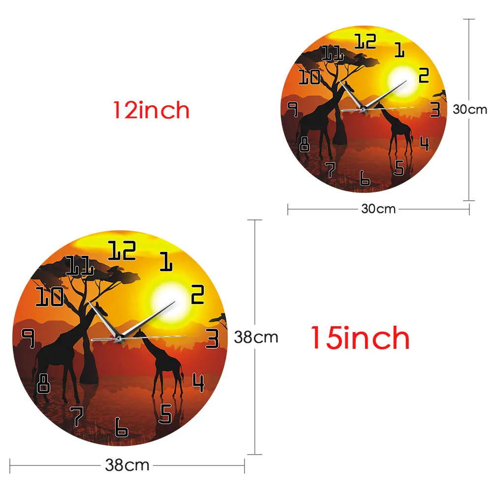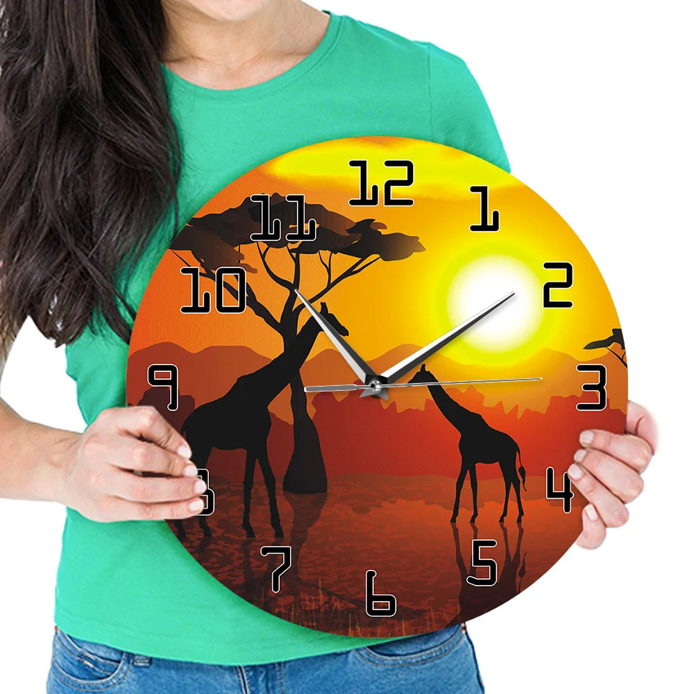 Настенные часы с принтом Серенгети, Африканский Закат, Саванна, сафари, Подвесные часы с изображением дикой природы, наручные часы с изображением жирафа год, без тикания