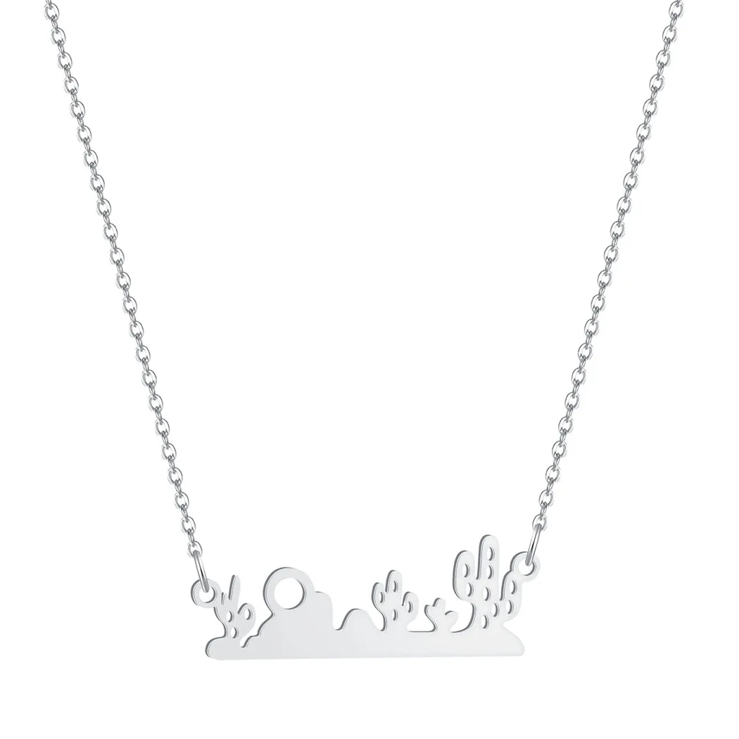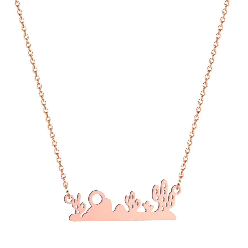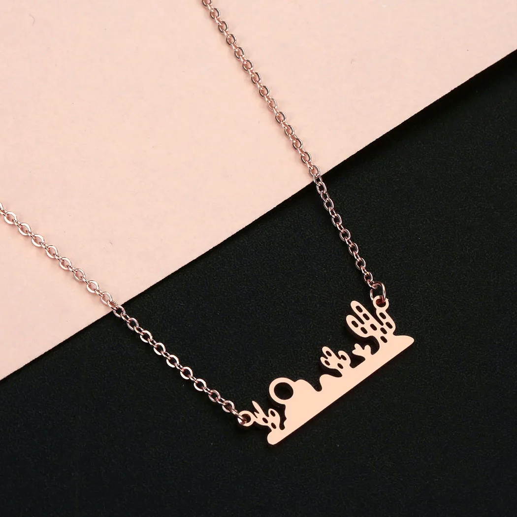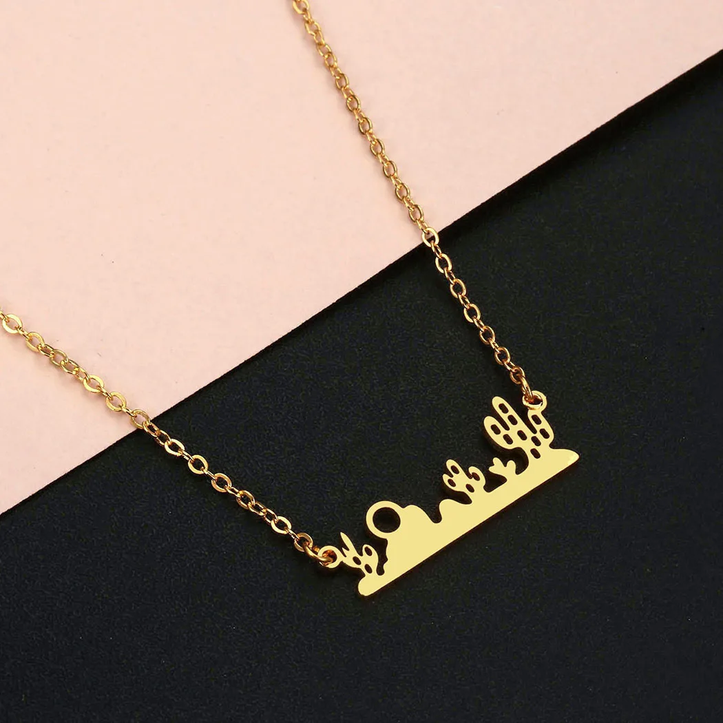 Женское ожерелье с подвеской Cxwind, подвеска из нержавеющей стали в виде кактуса, подвеска с пейзажем пустыни