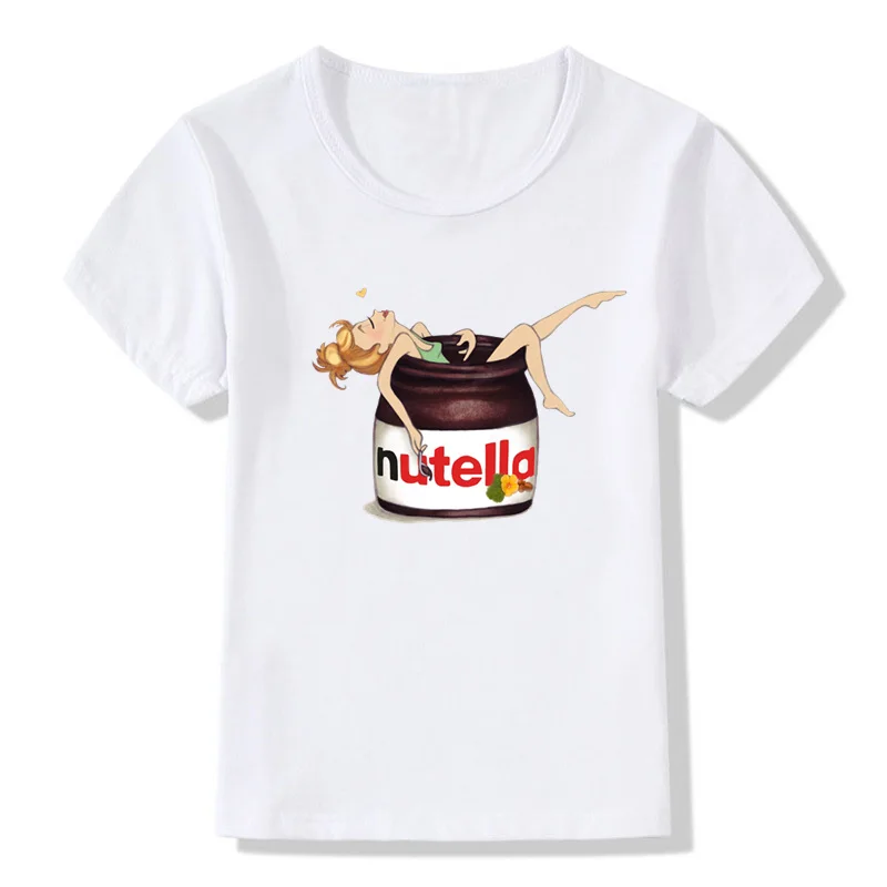 Детская футболка Nutella Kawaii с принтом, забавная футболка для маленьких мальчиков и девочек с коротким рукавом и круглым вырезом, детская повседневная одежда, топы, oHKP5357