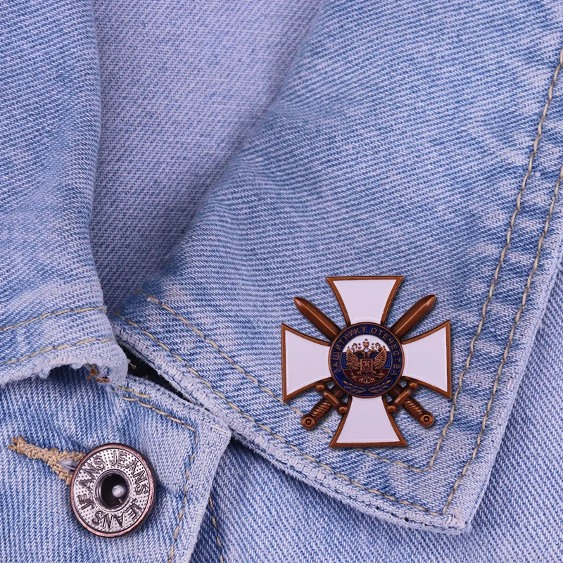 Значок на лацкан с российским флагом и брошь с российским государст...