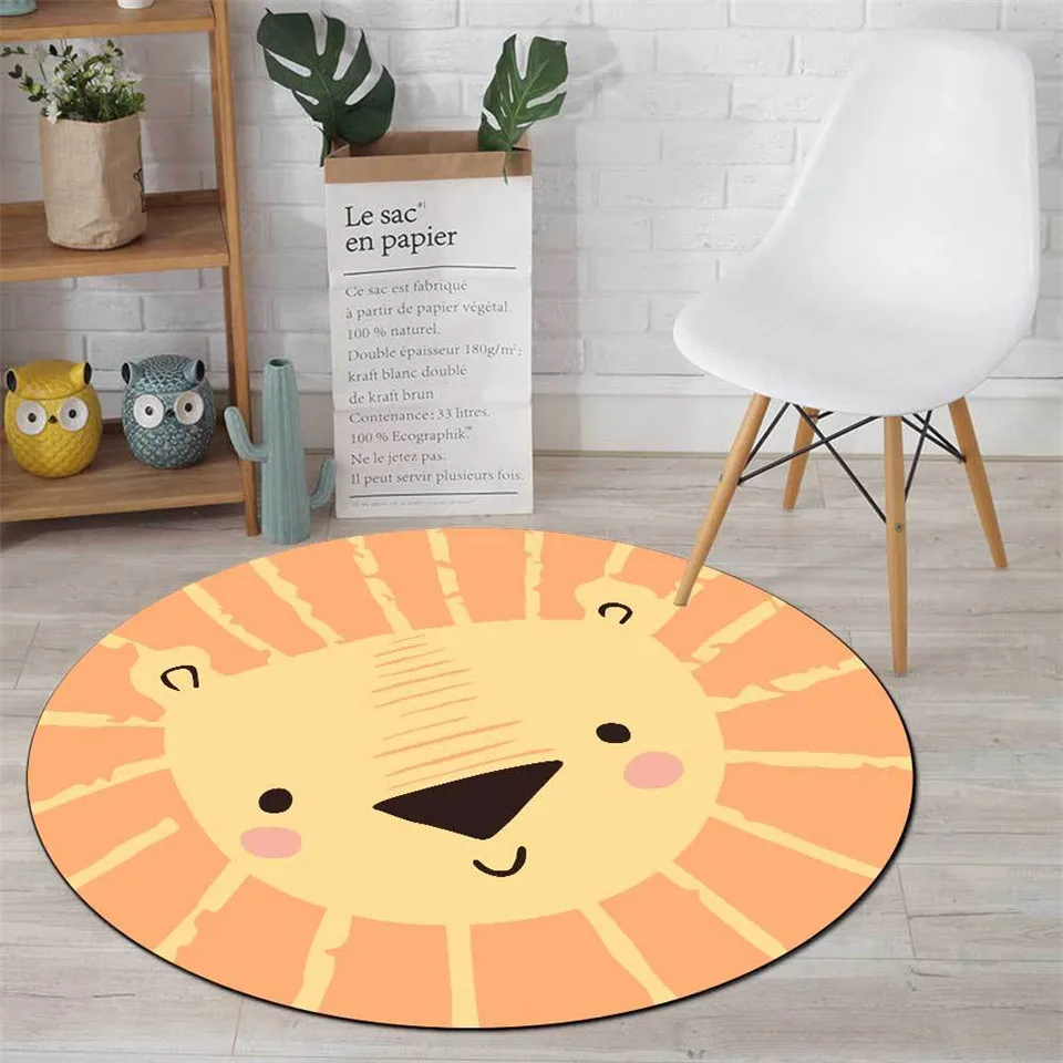 Милый круглый детский коврик с оранжевым львом из мультфильма, детский декоративный коврик для мальчика в скандинавском стиле, коврик для палатки, спальни, кровати, игровой коврик