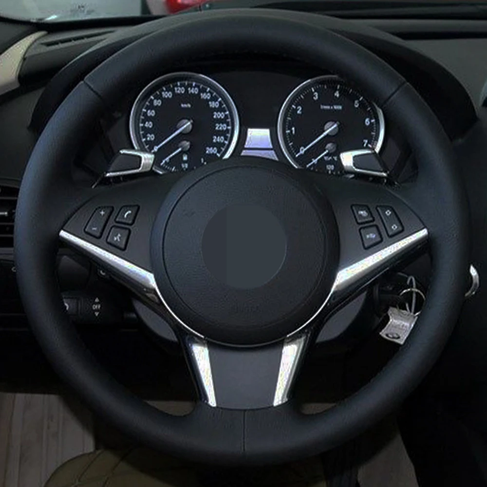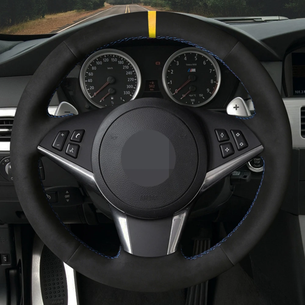 Чехол рулевого колеса автомобиля Черная мягкая замша ручной работы для BMW E60 530d 545i 550i E61 E63 E64 630i 645Ci 650i 2004-2009
