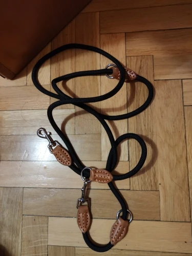 Довольно приличный до сих пор выглядит как на фото! Я получил кофе, и цвет немного светлее, чем я хотел бы, но это нормально, я был приятно удивлен, что кожа настоящая. Я бы хотел, чтобы первое кольцо d (самое близкое к защелке) было еще далеко. Они слишком близки друг к другу, чтобы их можно было использовать. У моей собаки 50 фунтов, и она будет останавливать и нюхать, и до сих пор защелки держатся. Я не думаю, что могу доверять поводку с большой собакой.