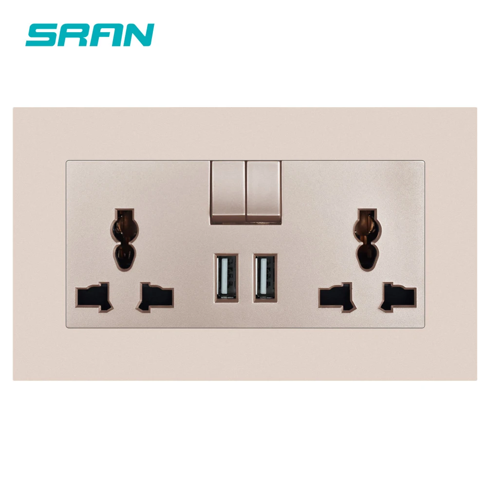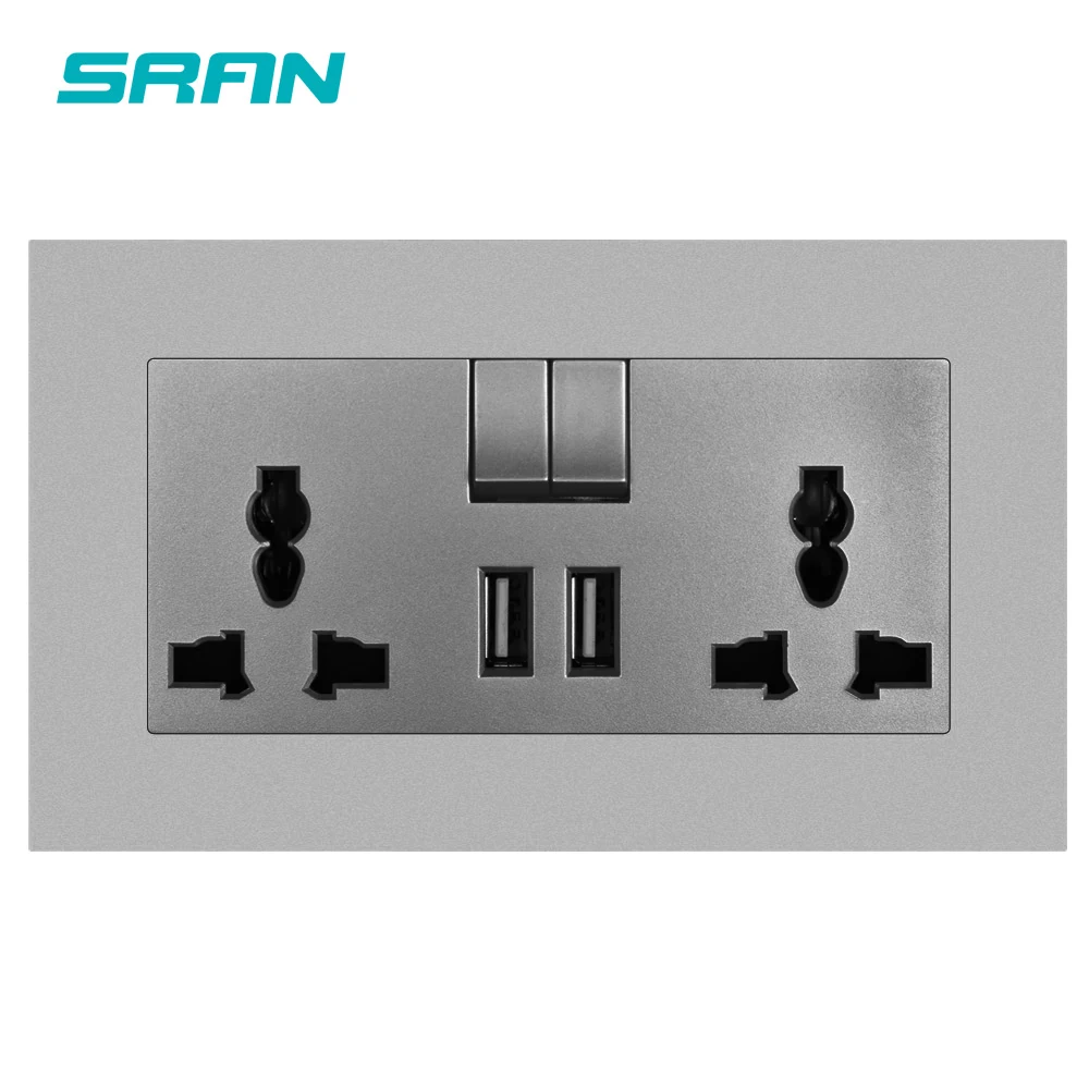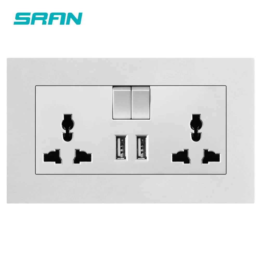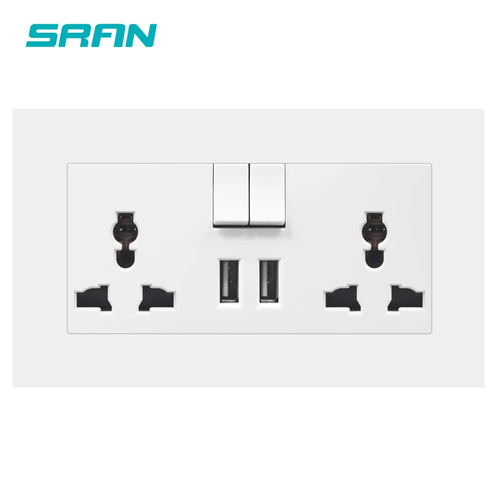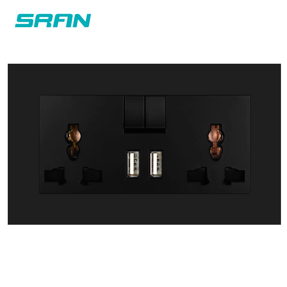 SRAN двойная универсальная розетка питания, розетка с usb с переключателем и ВклВыкл led панель ПК 146 мм * 86 мм двойная 13A общая 3pin розетка