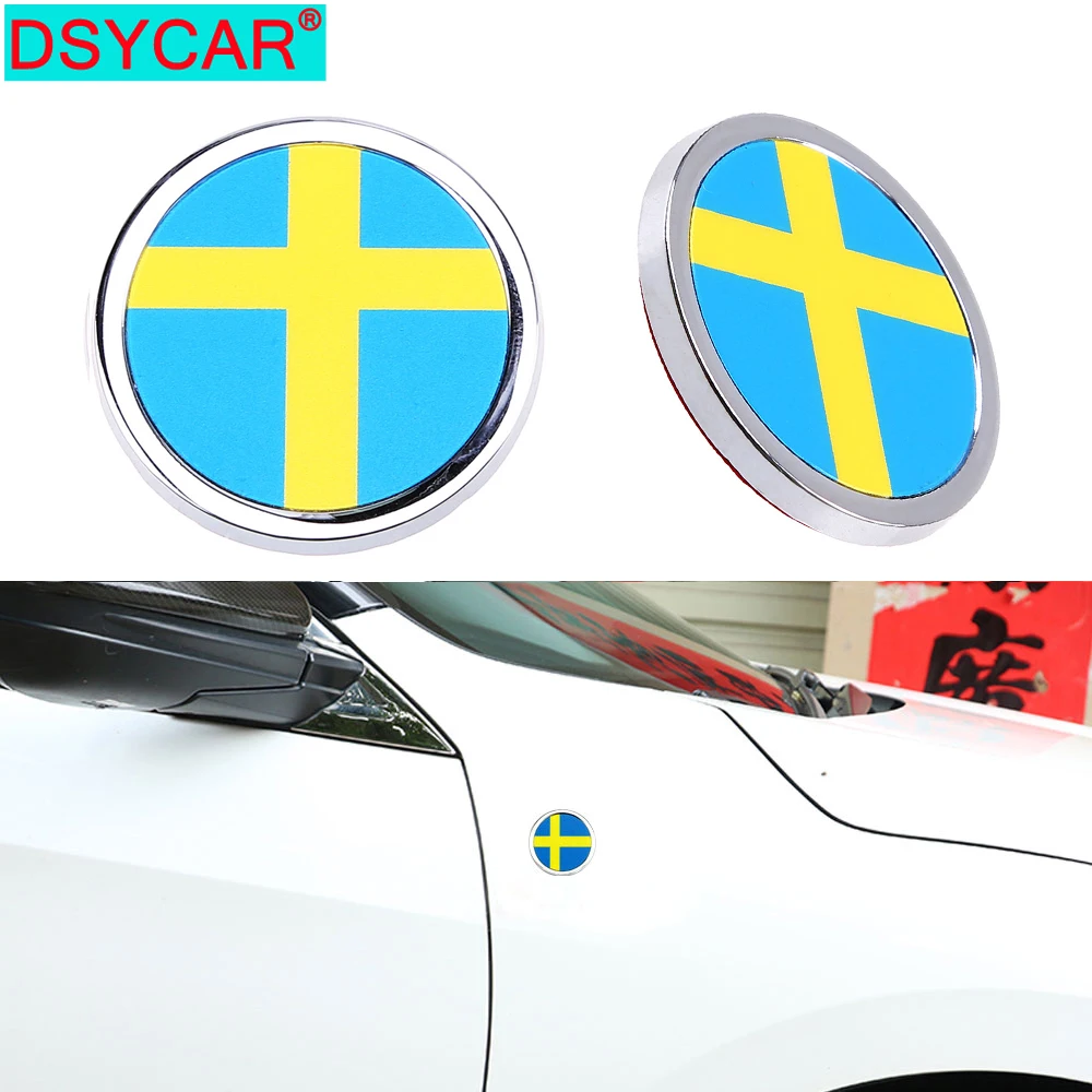 DSYCAR шведский национальный флаг, 3D металлическая наклейка, Мини Круглая Эмблема Для Volvo, Ford, Audi, Benz, Honda, Nissan, VW, BMW, Dodge, Hyundai, LADA
