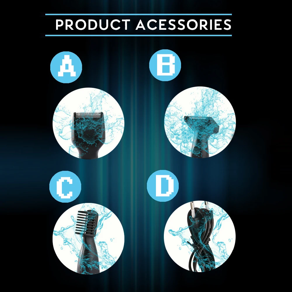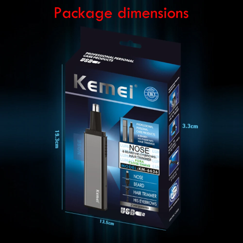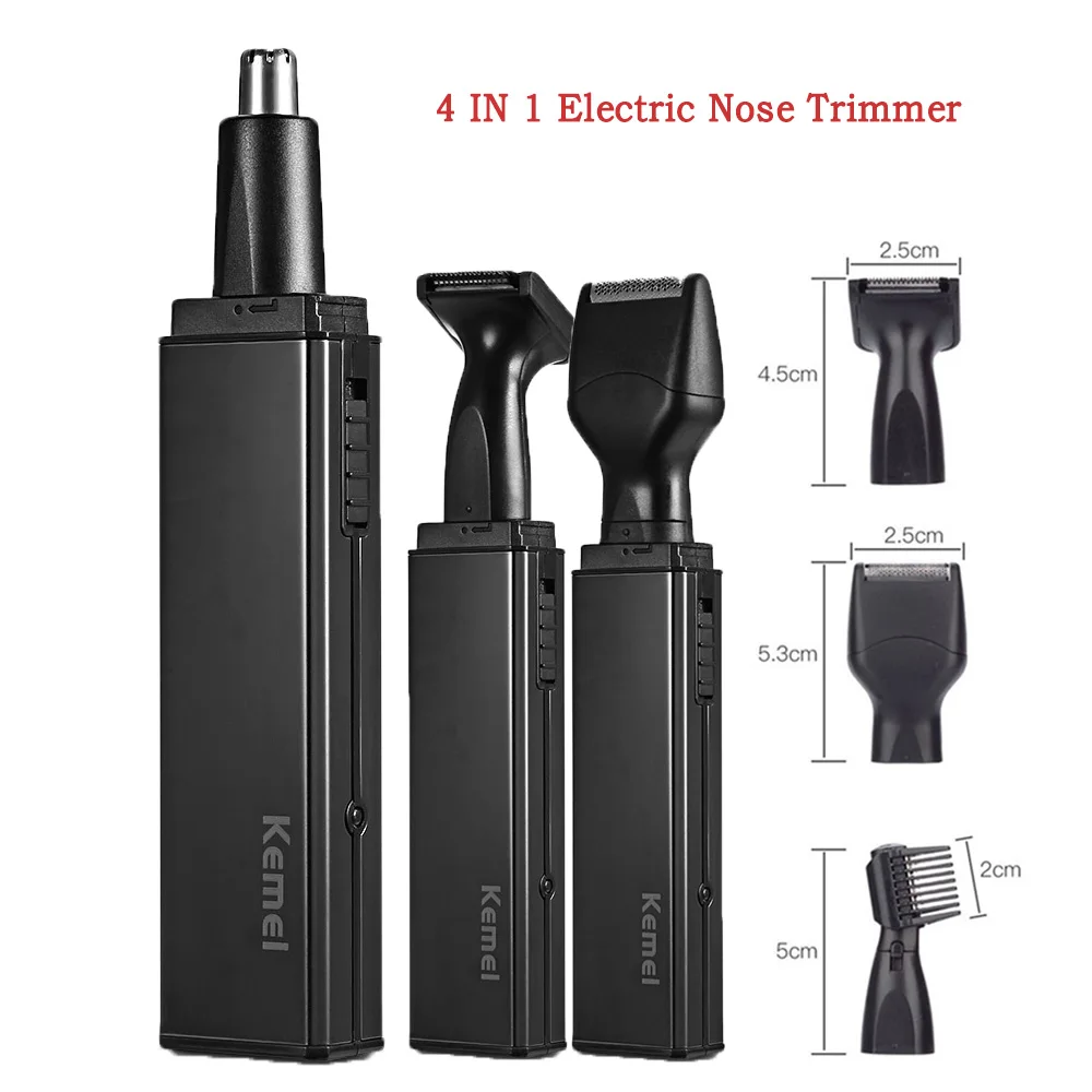 Электрический триммер для носа Kemei 4 в 1, бритва, аккумуляторная бритва для удаления волос, бакенбарды, ушные брови, триммер для бороды, инструмент для ухода за лицом