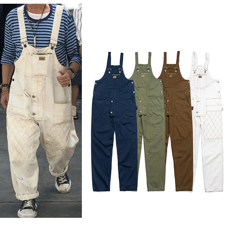 Полукомбинезон в стиле сафари с множеством карманов, Мужская Уличная одежда в стиле хип-хоп, рабочие брюки-карго, спецодежда, мужские повседневные свободные брюки на лямках, большие брюки