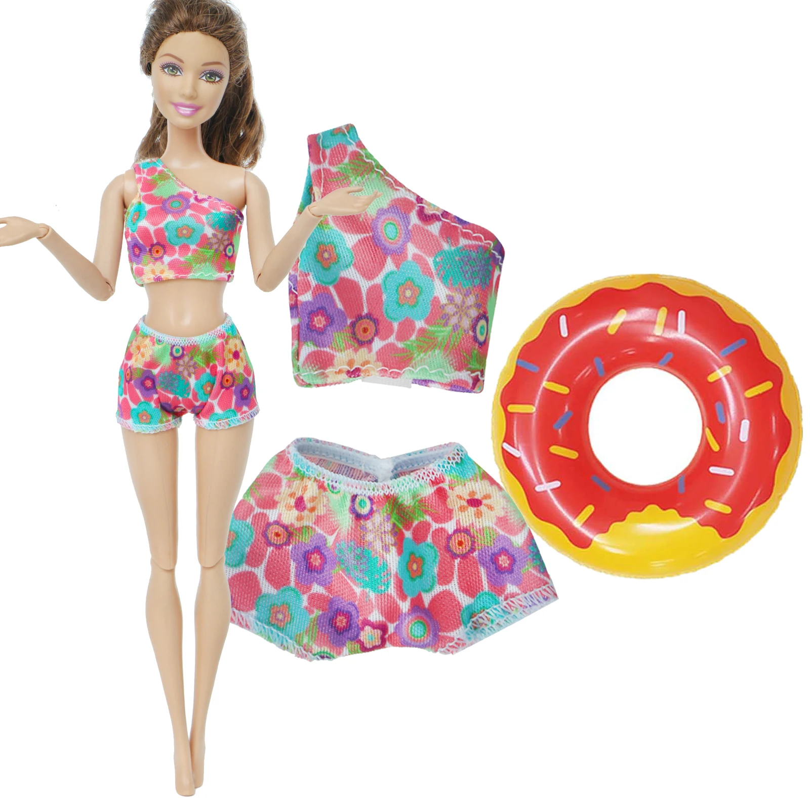 Модная кукла ручной работы, бикини, пляжная одежда, купальник с цветами + кольцо для плавания, Одежда для куклы Барби, аксессуары, 12 дюймов, детская игрушка