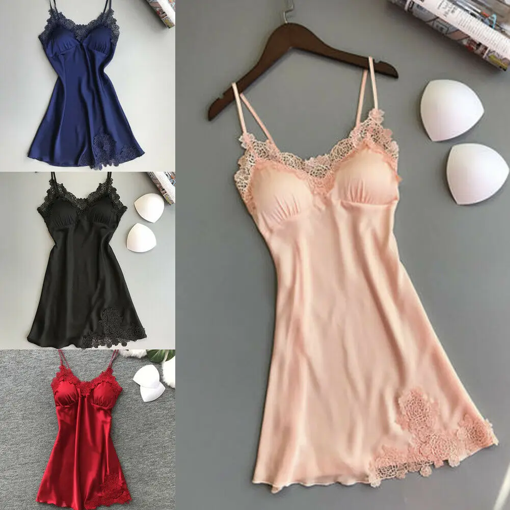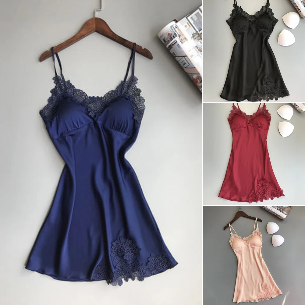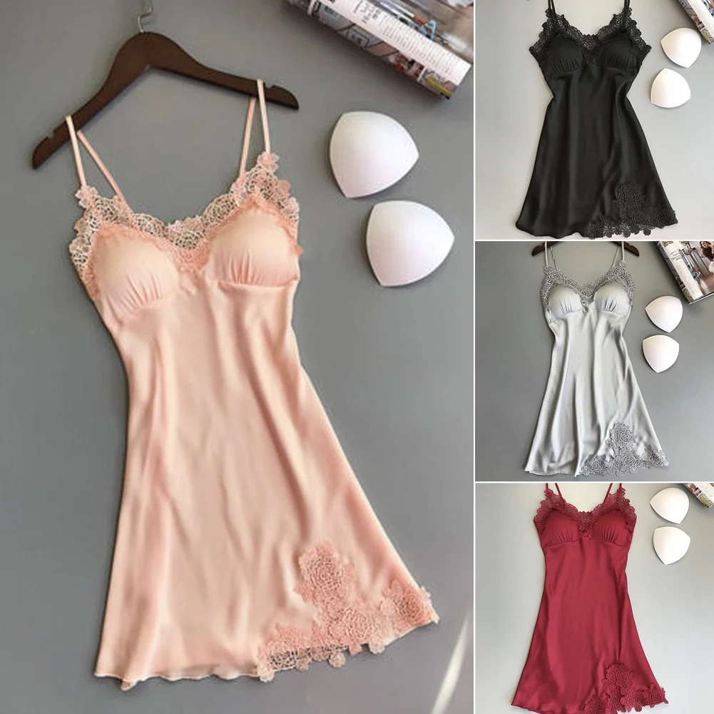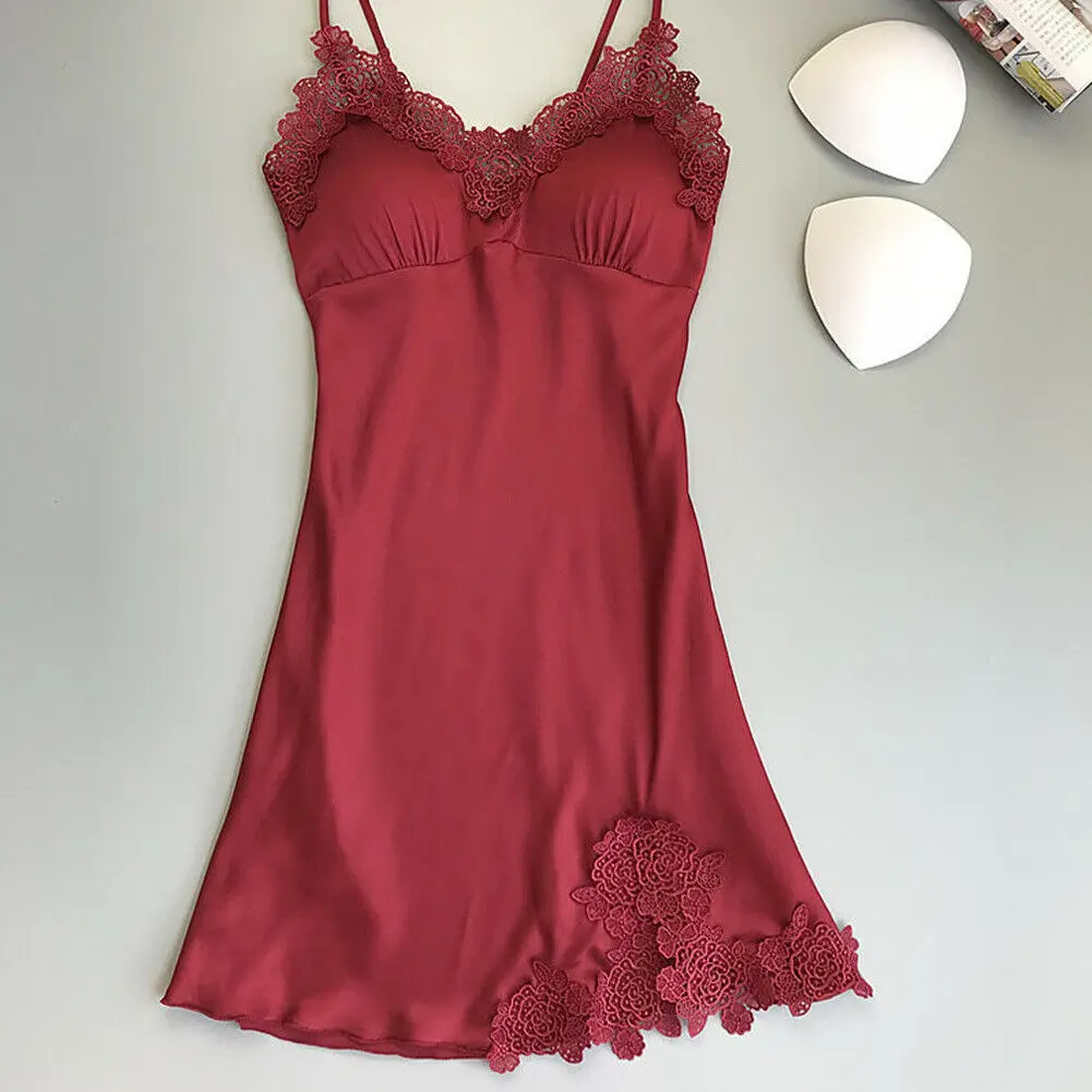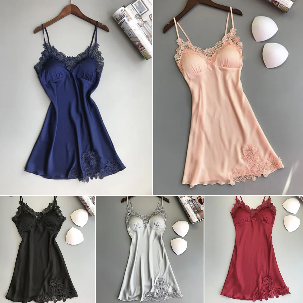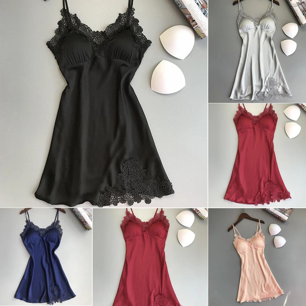 Женское сексуальное шелковое кружевное нижнее белье без рукавов, ночная рубашка, летняя сорочка, ночная рубашка 2020