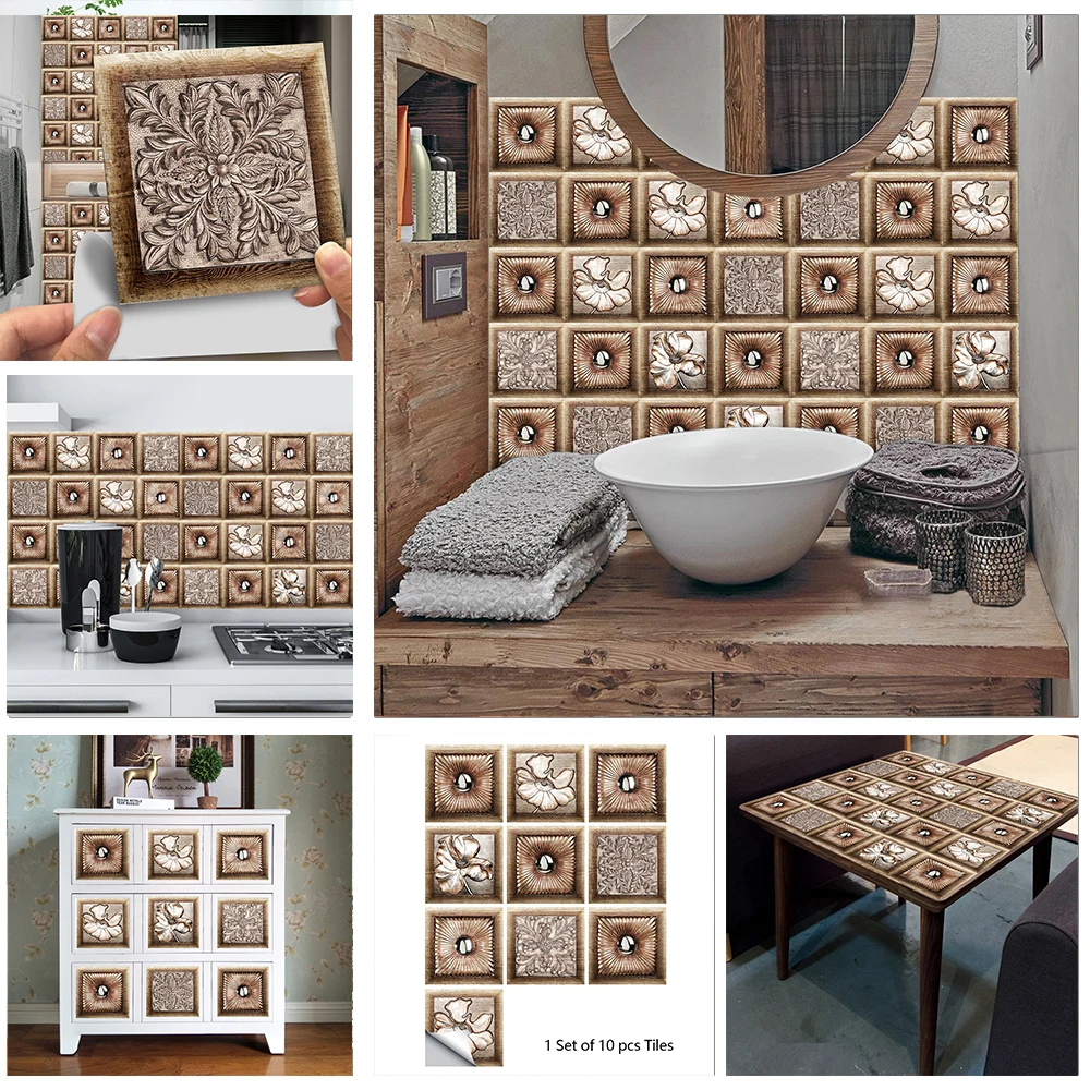 Наклейки на стену, коричневые, с текстурой древесины, 10 шт.компл.