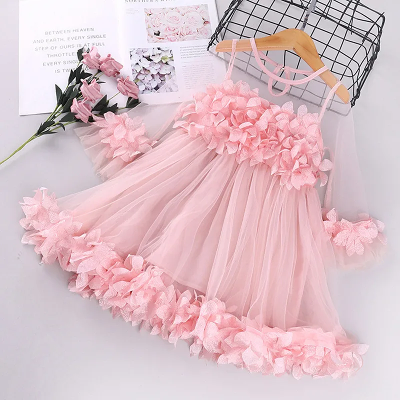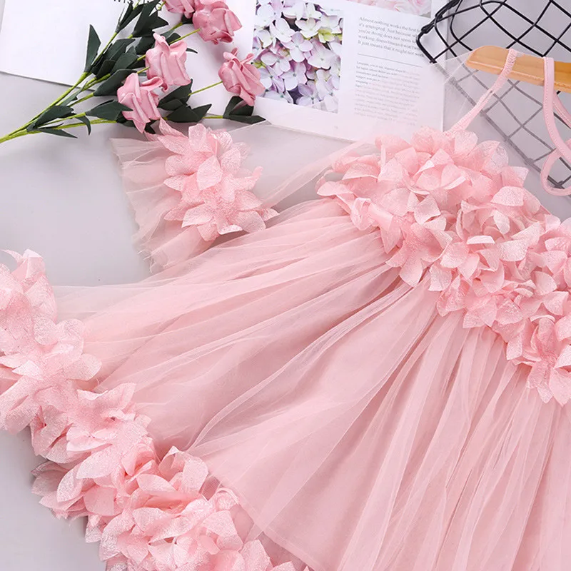 Платье принцессы с объемным цветочным рисунком для маленьких девочек, элегантное кружевное детское платье-пачка для свадебной вечеринки, детская одежда для маленьких девочек