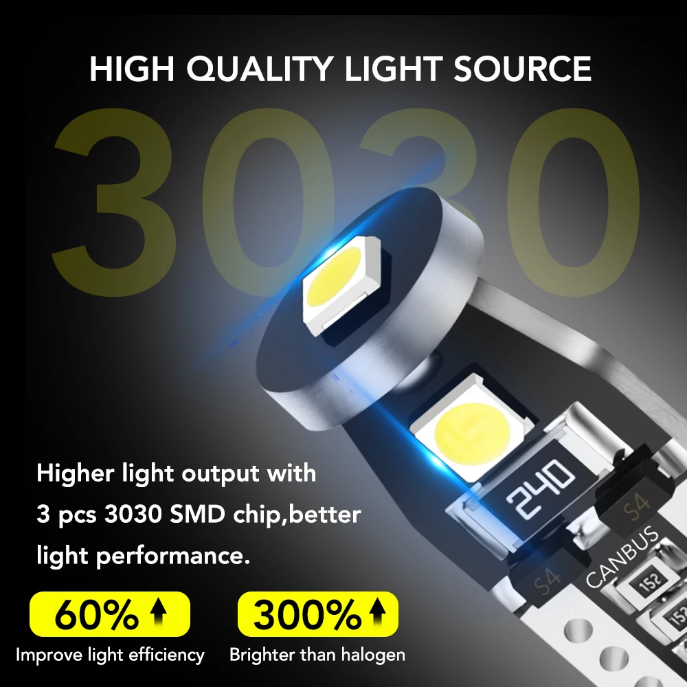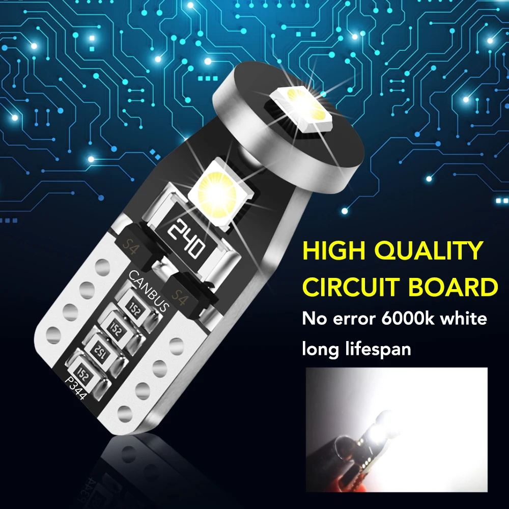 Автомобильный светодиодный светильник T10 W5W 10x Canbus, без ошибо...
