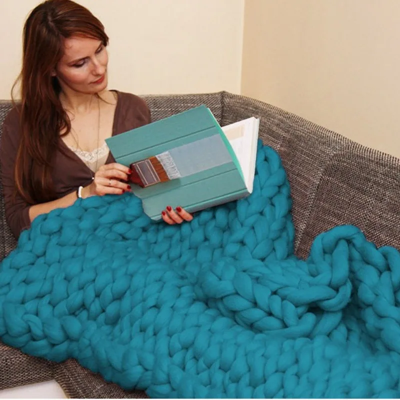 Толстое трикотажное одеяло из гигантской пряжи, ручное плетение, реквизит для фотосессии, мягкое вязаное одеяло s