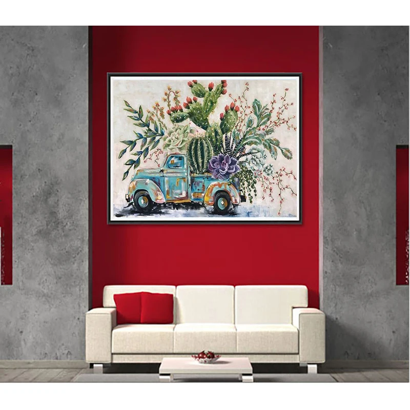 Алмазная живопись SNA, пейзаж, вышивка крестиком, алмазная вышивка, полный набор, картина из бисера в виде автомобиля и кактуса, алмазная живопись, искусство, украшение для дома
