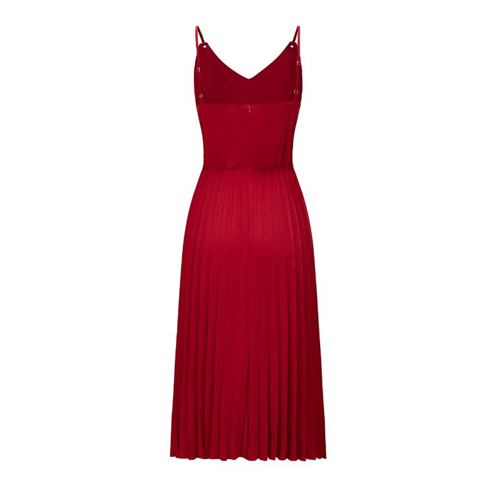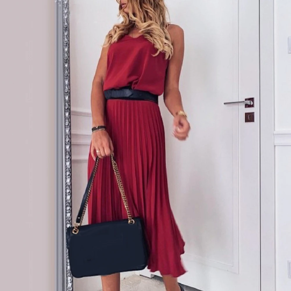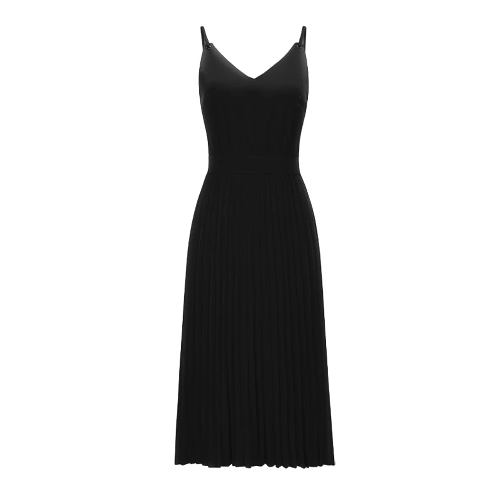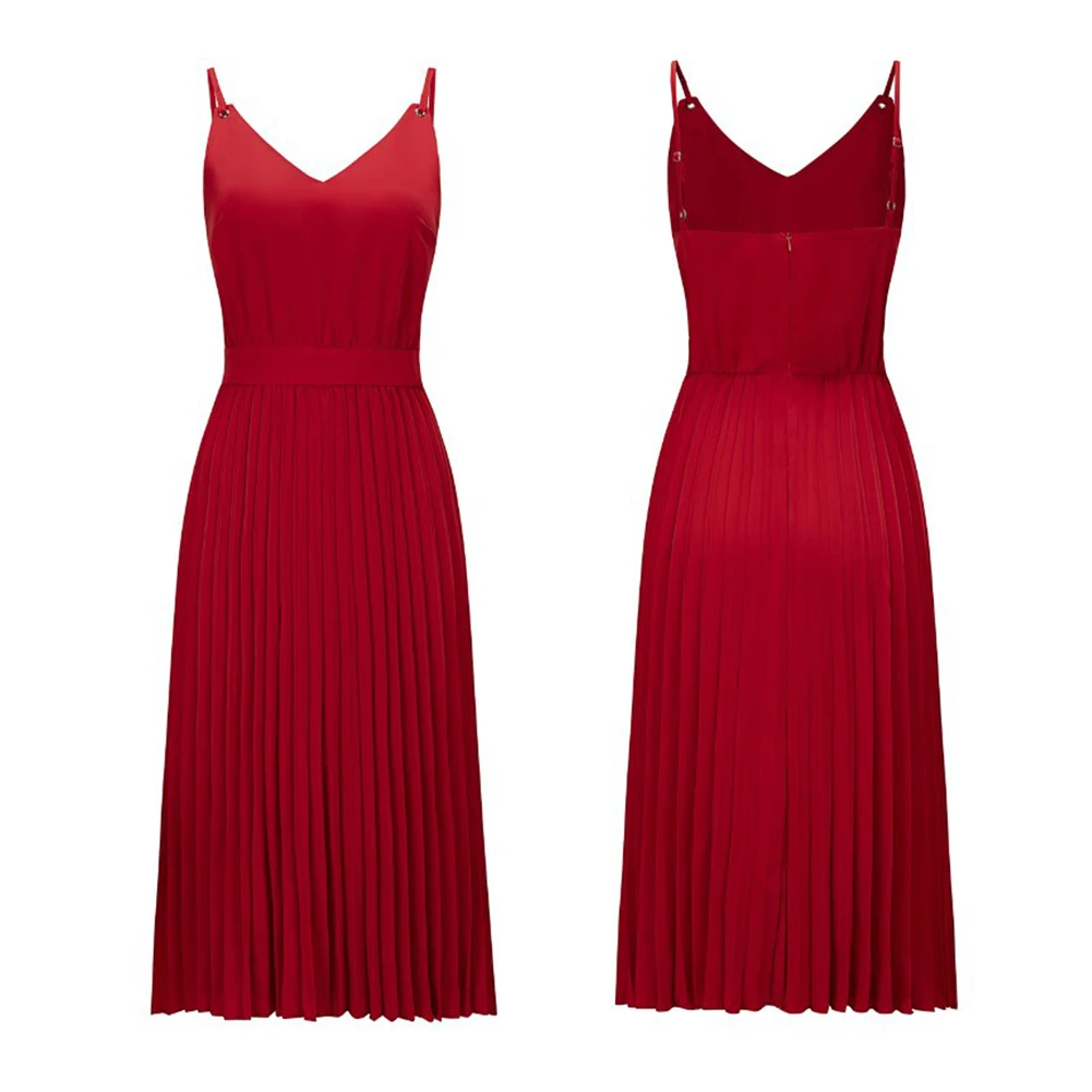 Платье женское средней длины на бретелях-спагетти, пикантное Плиссированное однотонное с V-образным вырезом, с большим подолом, регулируемые бретельки
