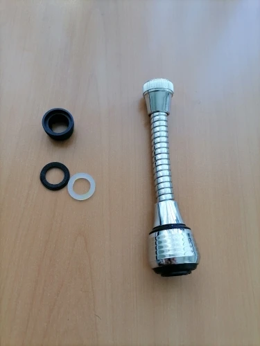 Быстро получил. Соответствует описанию. Пластик, чтобы увидеть вовремя. Идеально подходит для моего кухонного крана. Продается с адаптером и уплотнителем. Со своей стороны мне это не нужно, я просто использовал уплотнение. Очень доволен этой покупкой. Я рекомендую продавцу.