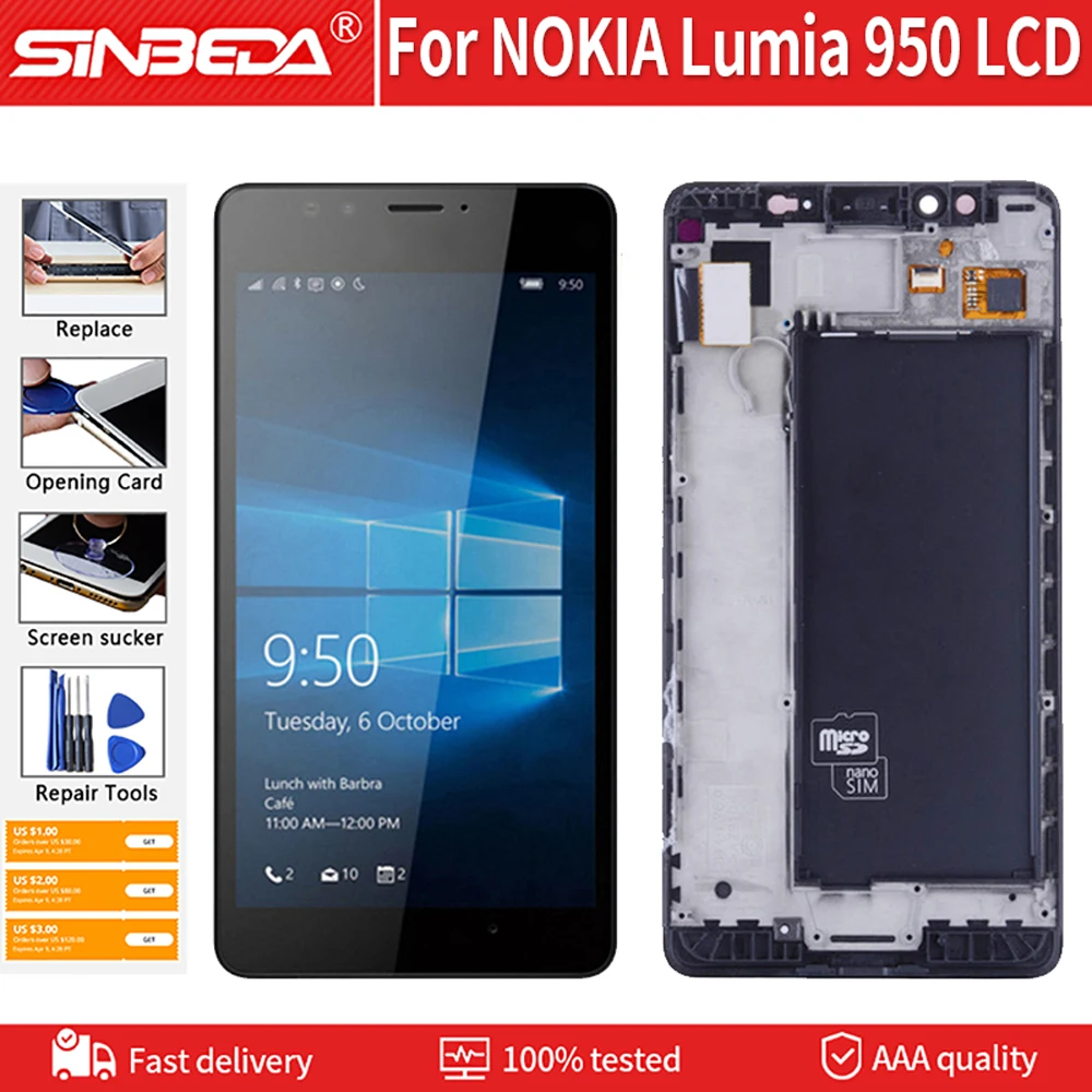 5,2 "оригинал для NOKIA Lumia 950 RM-1104 RM-1118 ЖК-дисплей сенсорный экран AMOLED дигитайзер сборка Замена для NOKIA 950