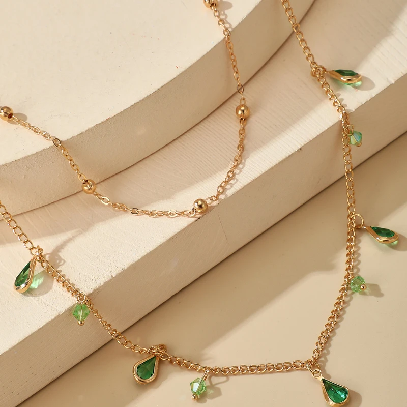 Женское Ожерелье-чокер Tocona, многослойное ожерелье с зелеными каплями стразы, украшение из бисера, 14723